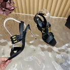 BALMAIN 25S RHINESTONE STILETTO SANDALS 95MM IN BLACK CALFSKIN