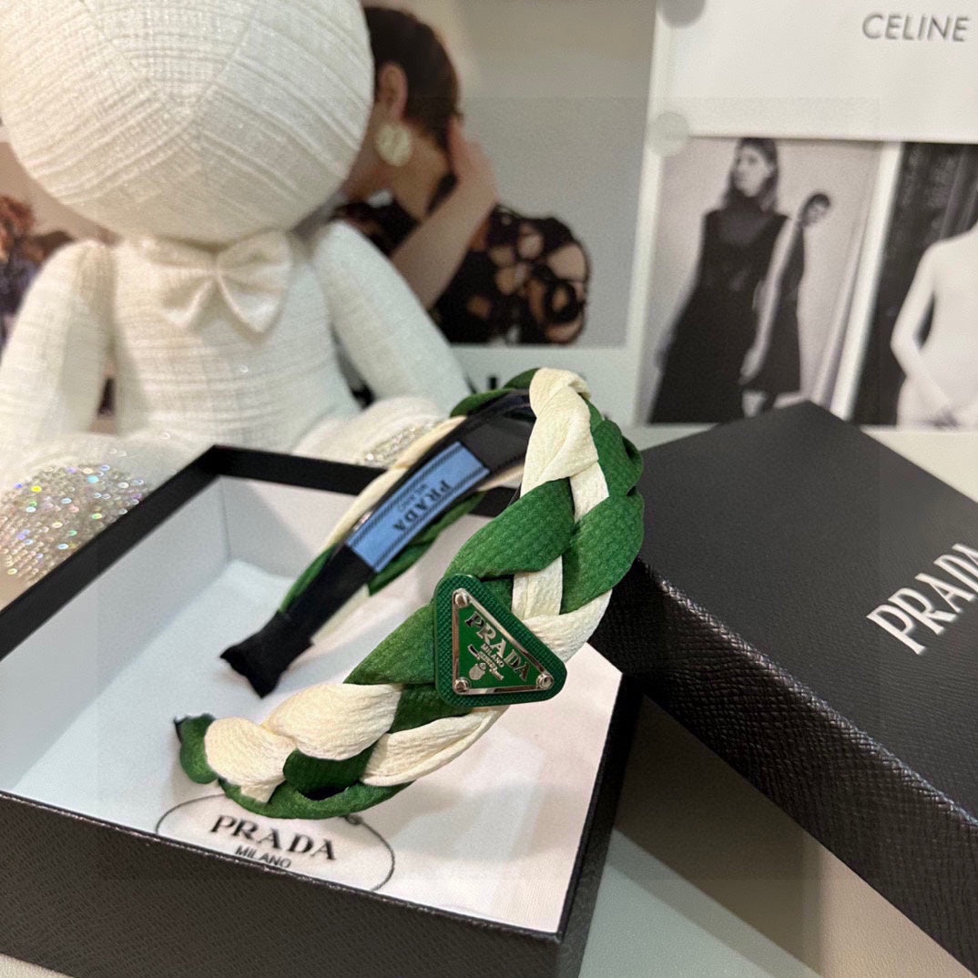 BRAIDED HEADBAND IN GREEN AND WHITE FABRIC 316685
