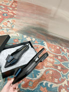 CASSANDRA SLINGBACK FLAT IN BLACK MIX BLUE SMOOTH LAMBSKIN