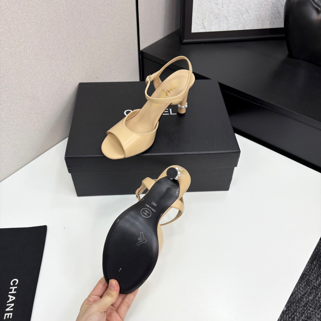 CC 25 Heel Sandals 80mm Beige Lambskin 368821