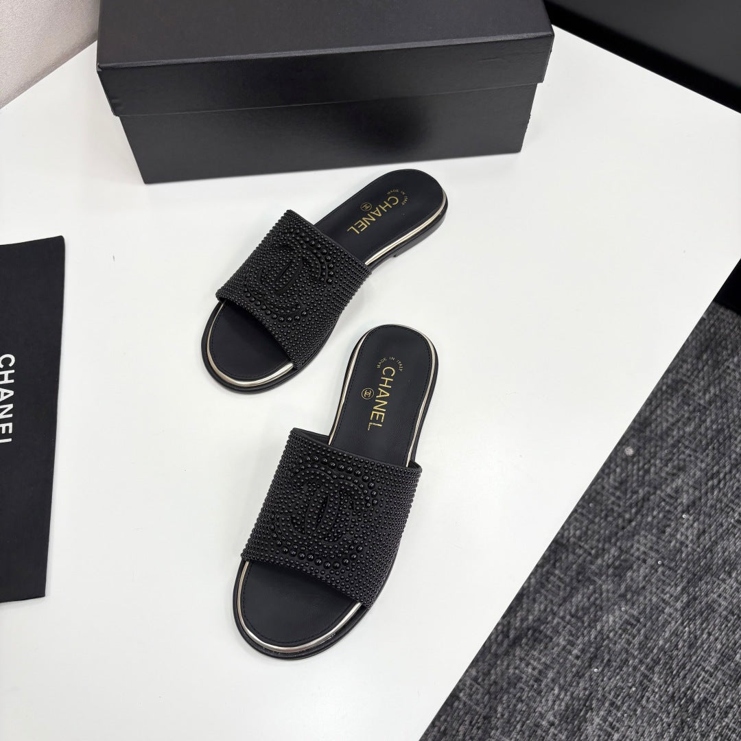 CC 25 Open Heel Mule Black Cultured Pearls And Sheepskin 368862