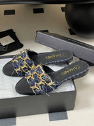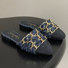 CC 25B Chain Closed Toe Flat Mule Navy Blue Denim 393886