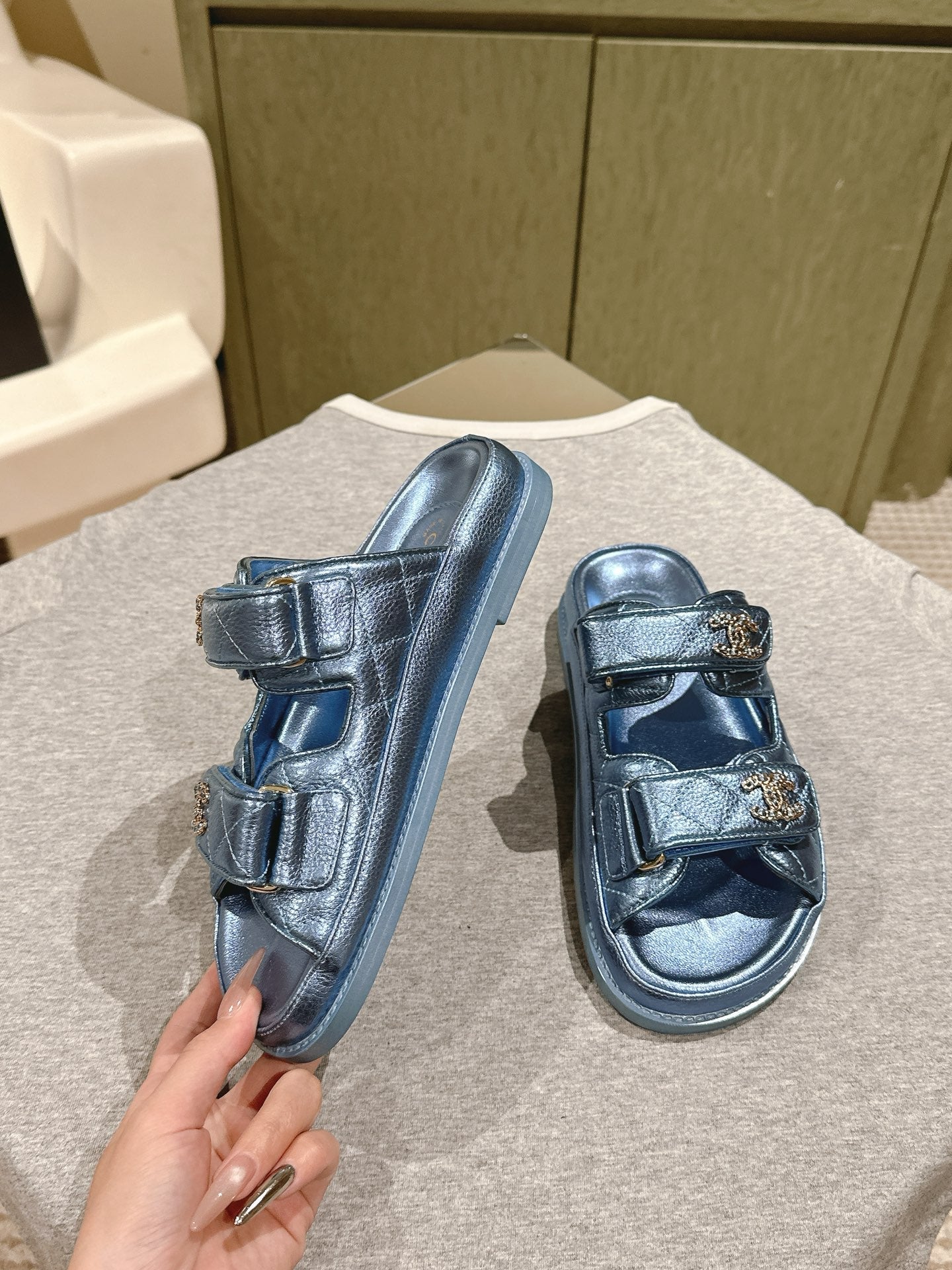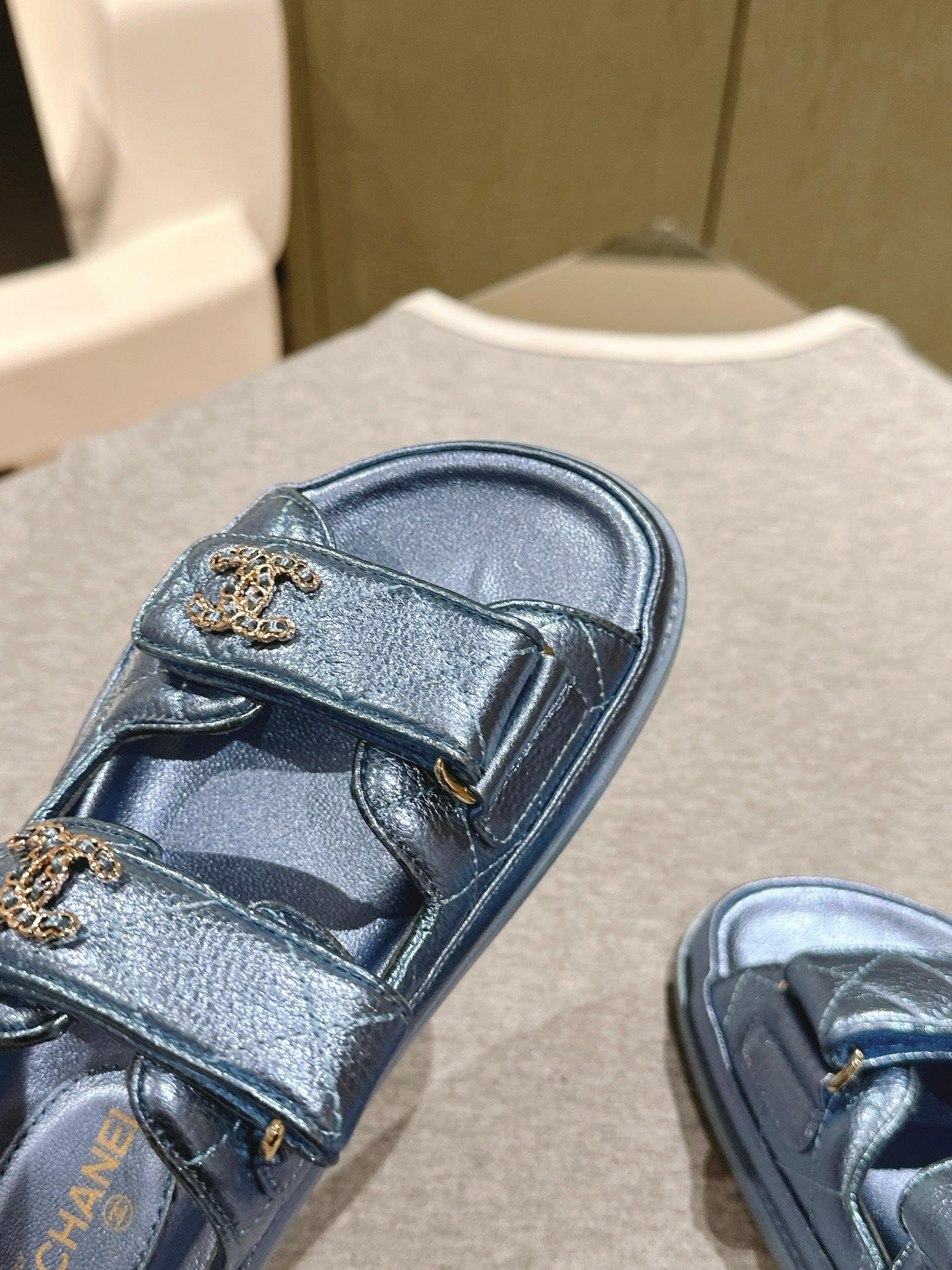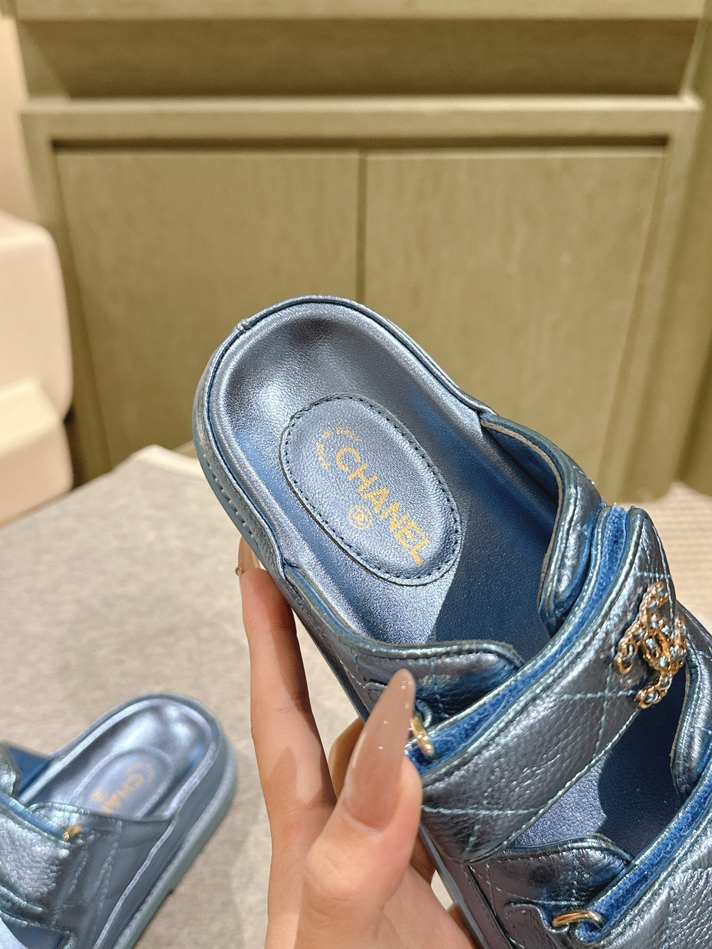 CC 25C Dad Sandals Mule Blue Metalic Grained Calfskin 462218