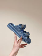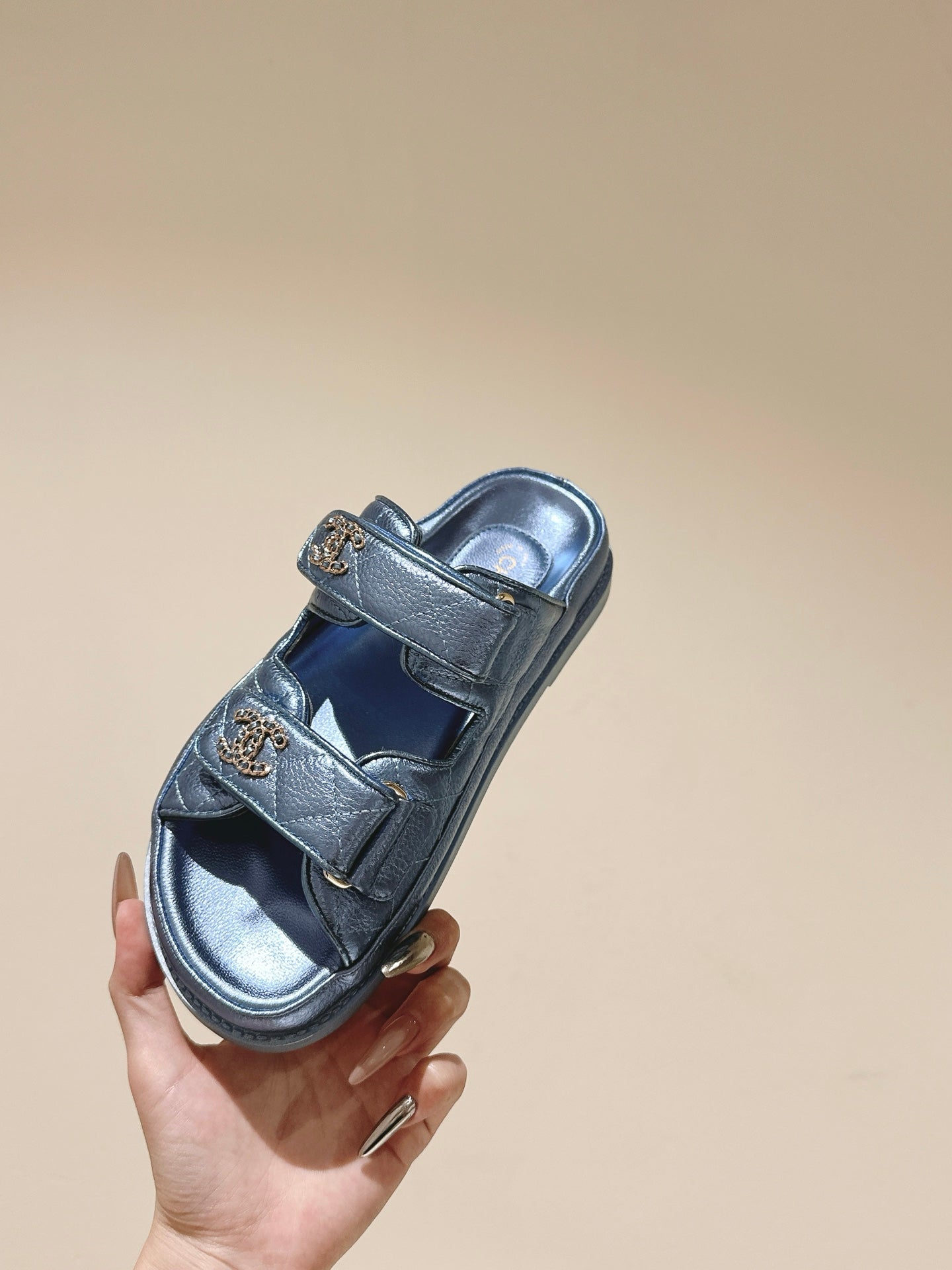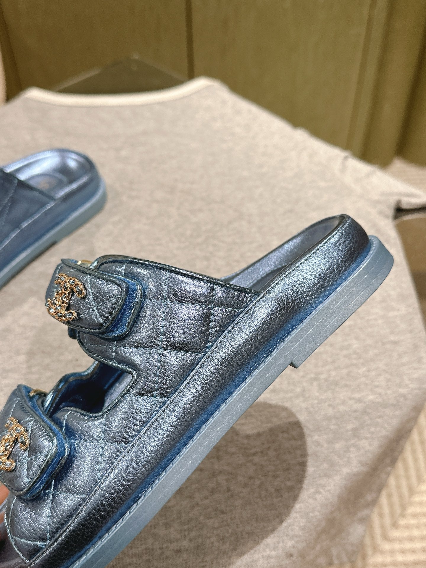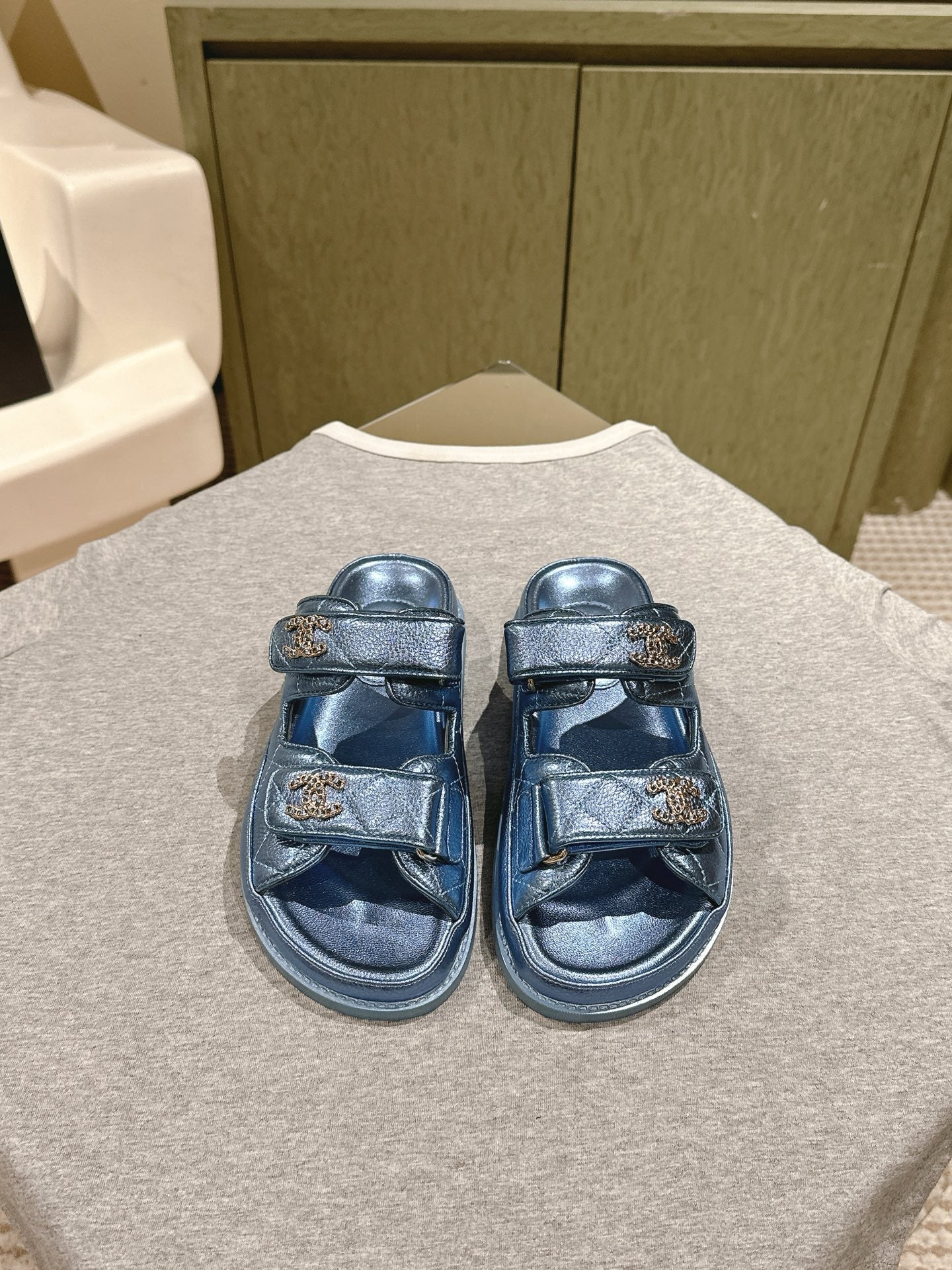 CC 25C Dad Sandals Mule Blue Metalic Grained Calfskin 462218