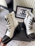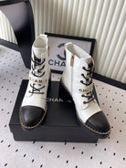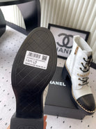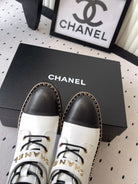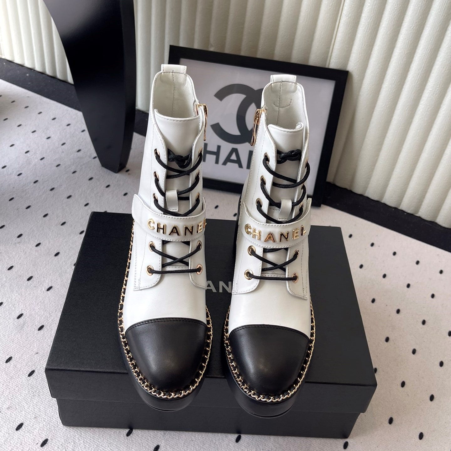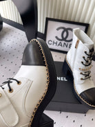 CC Buckle Ankel Boots With Chain 100mm White Black Sheepskin GHW 432501