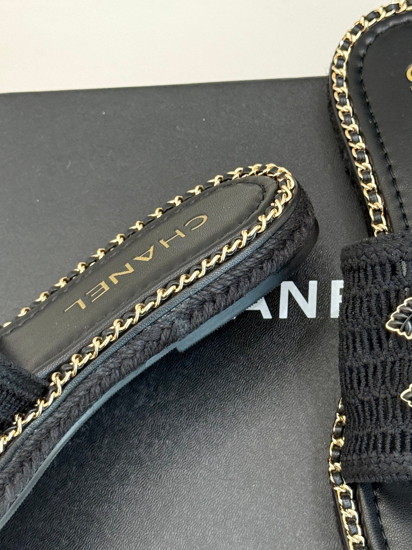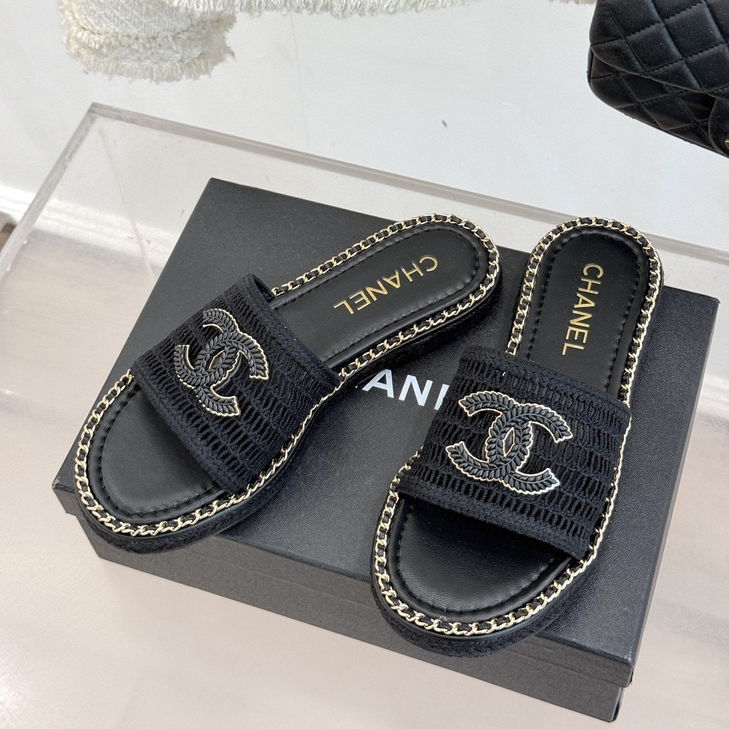 CC Mesh Hollow Chain Double C Thick-Soled Slippers 20mm Black 265647