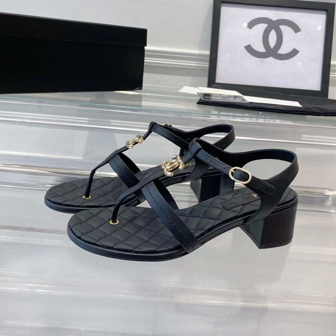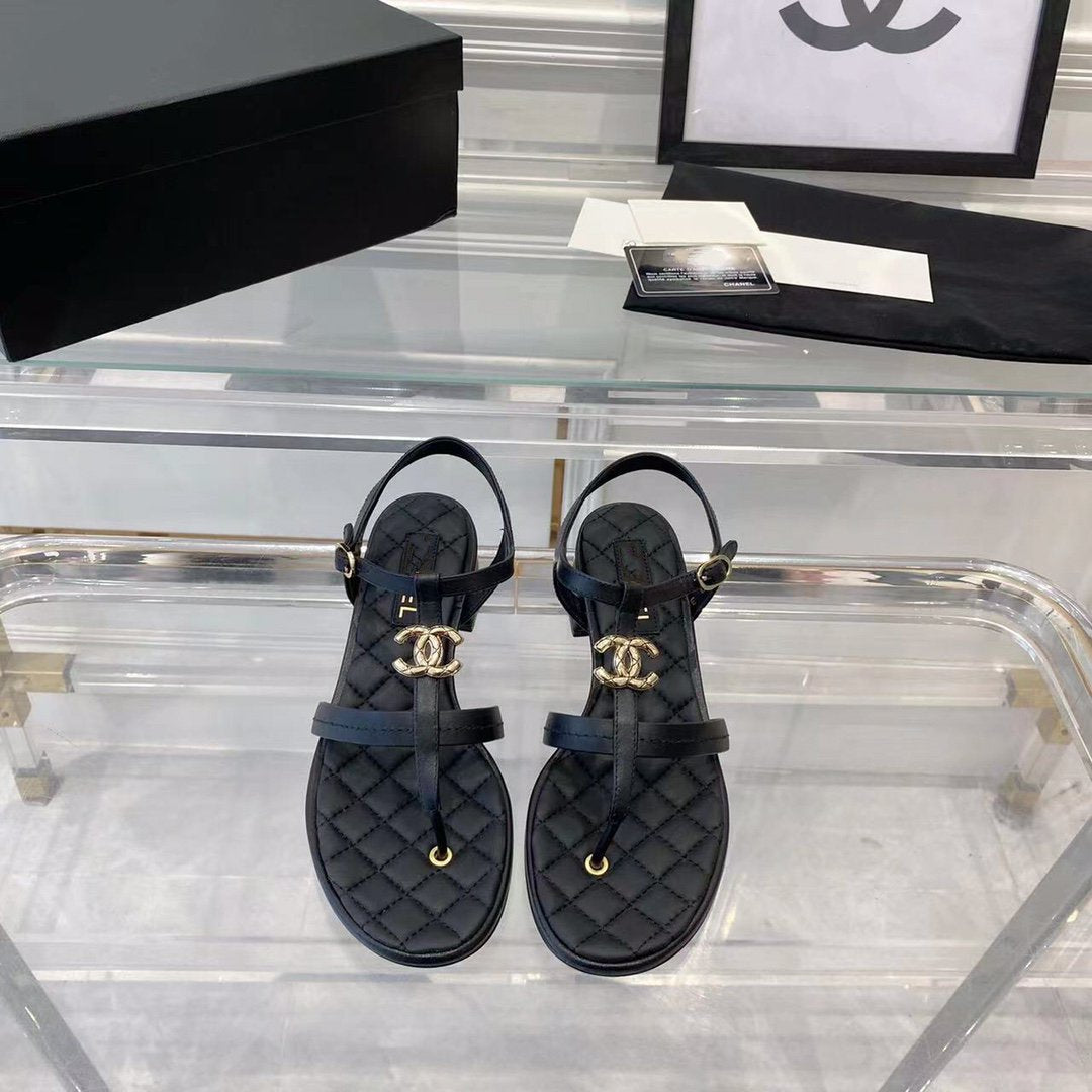 cc sandals black quilted lambskin