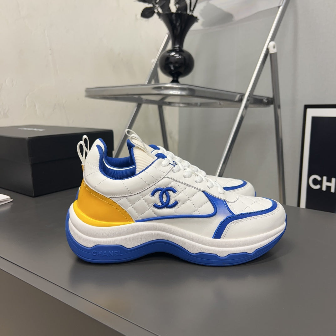 CC Sneaker Blue Yellow Quilted Cowhide