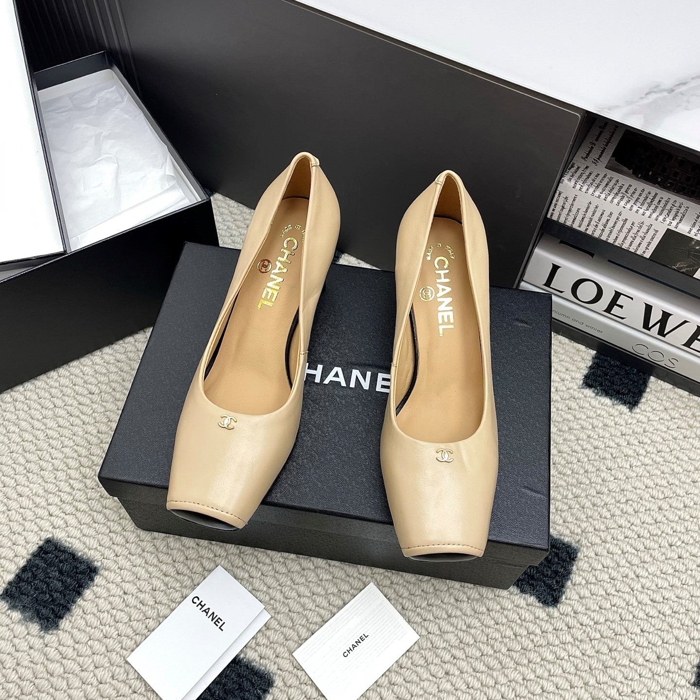 CC Square-Toe Pumps 65mm Beige Sheepskin 427014