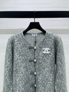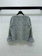 Chanel 2025 Fur-sleeved Crew Neck Cardigan Gray Polyester Wool 319595