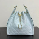 Chanel 2025 Hobo Bag 40cm Light Blue Grained Calfskin