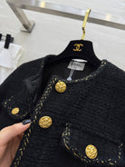 Chanel 2025 Jacket Black Tweed Fabric Gold Buckle 319479