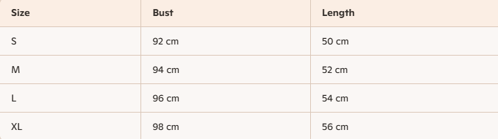 - For more information, please see the size guide below