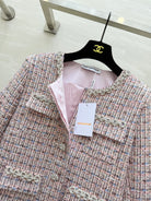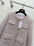 Chanel 2025 Rhinestone Chain Jacket Pink Woven Tweed Fabric 319510