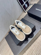 Chanel 25 Sneaker Light Brown White Mesh Fabric 540318