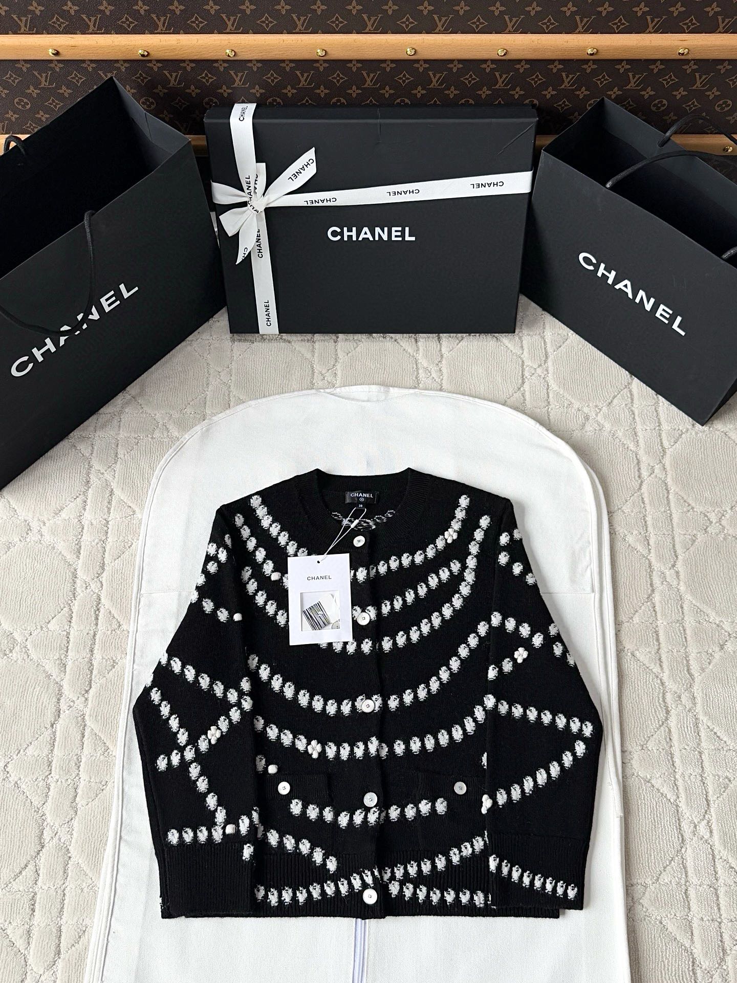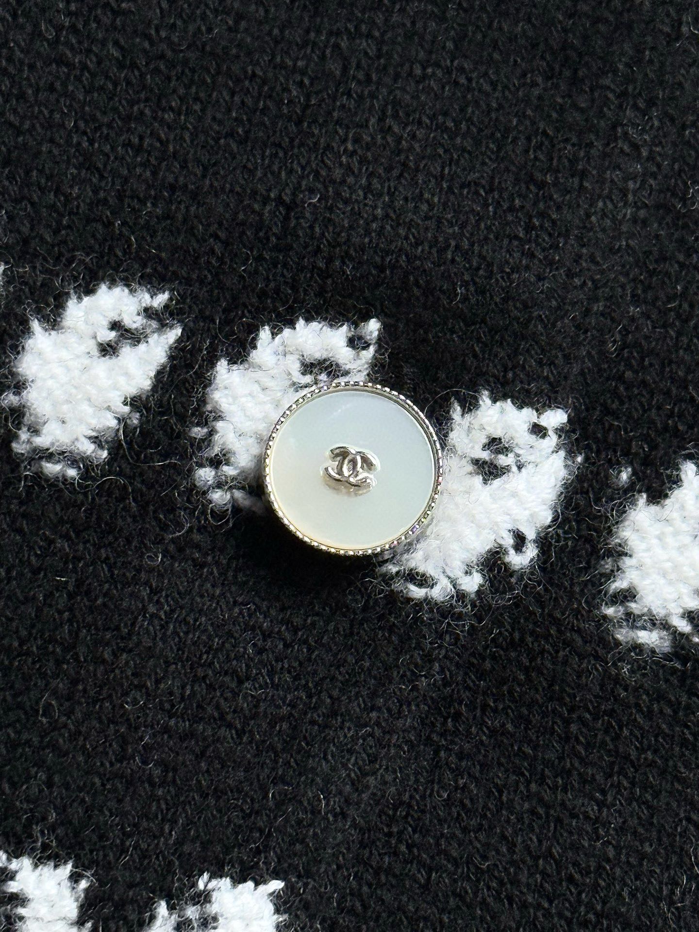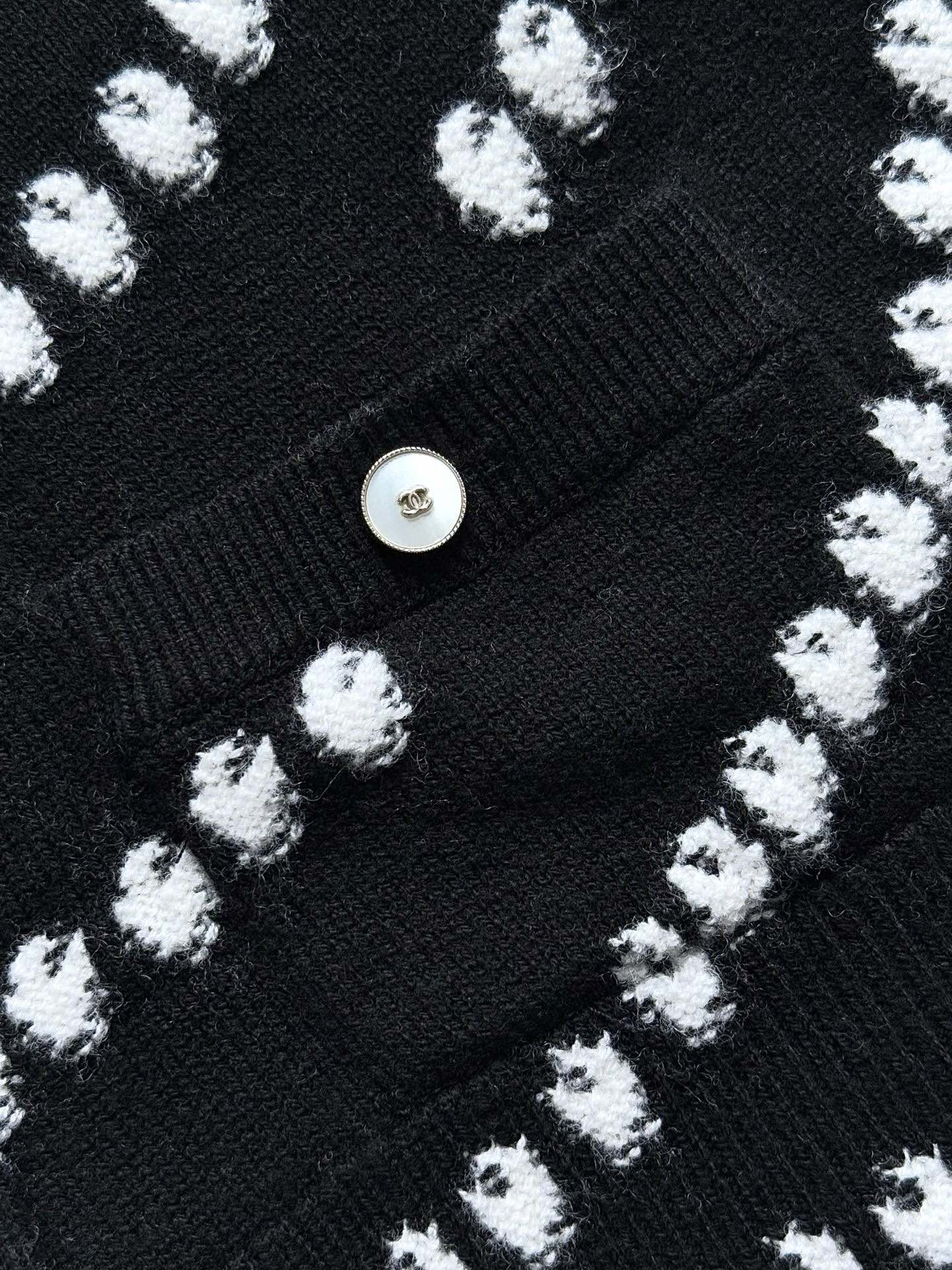 Chanel 25P Cardigan Black Mix White Cashmere 237301