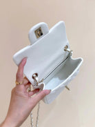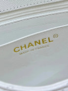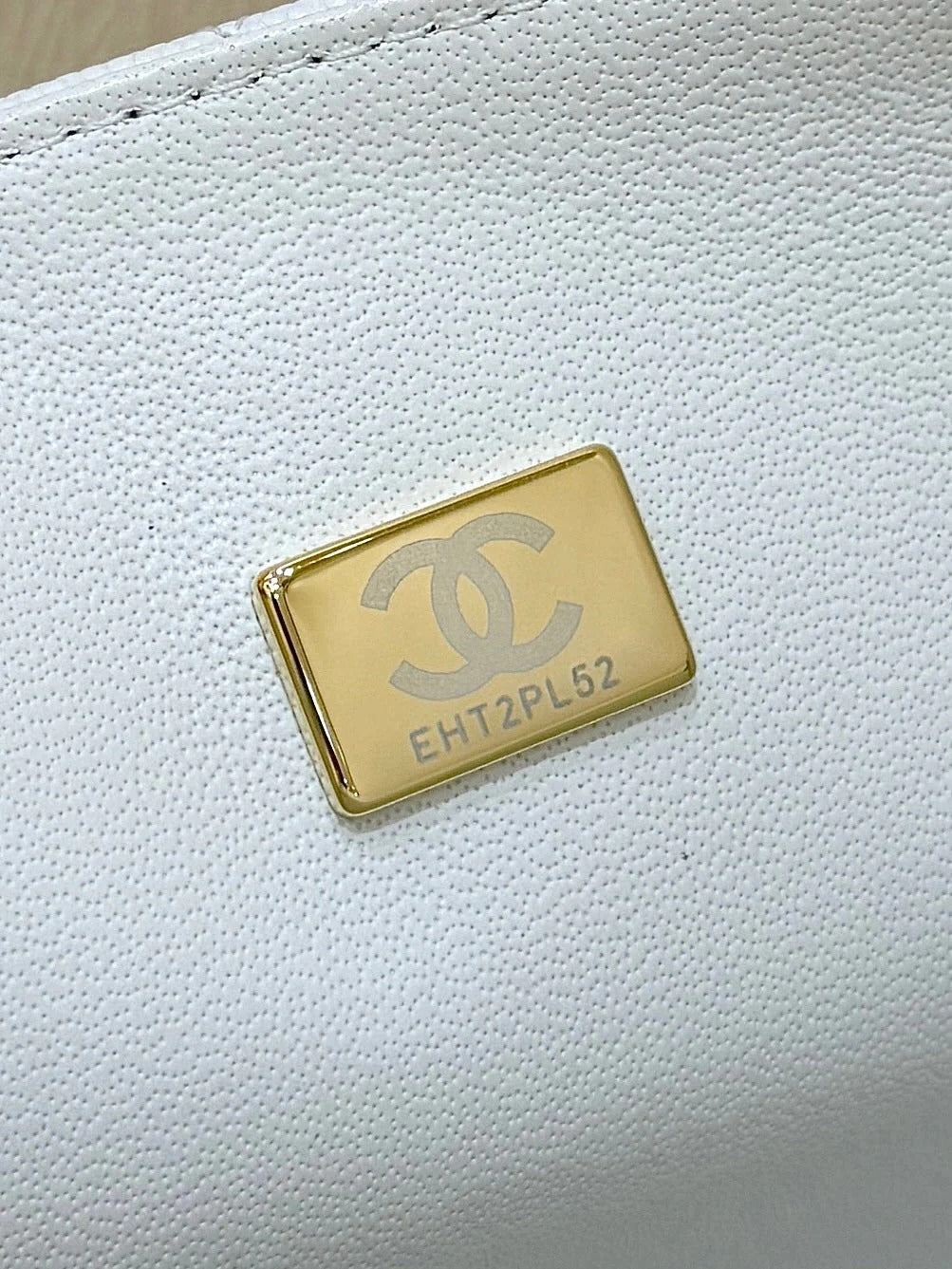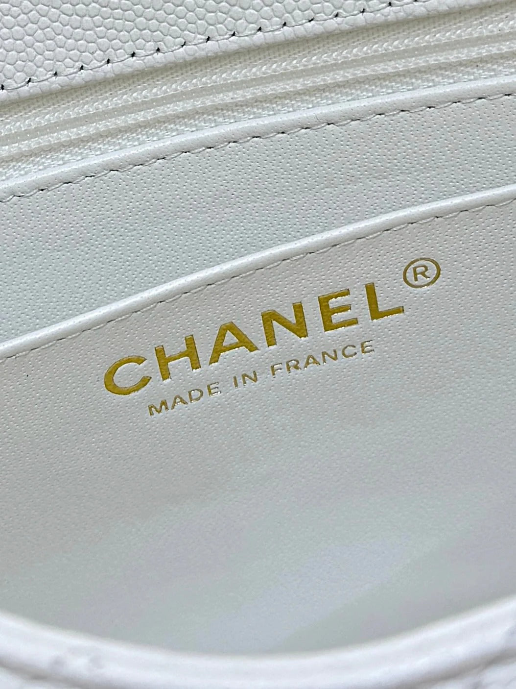 CHANEL 25S MINI SQUARE FLAP BAG 17 IN WHITE CALFSKIN CAVIAR GOLD HARDWARE