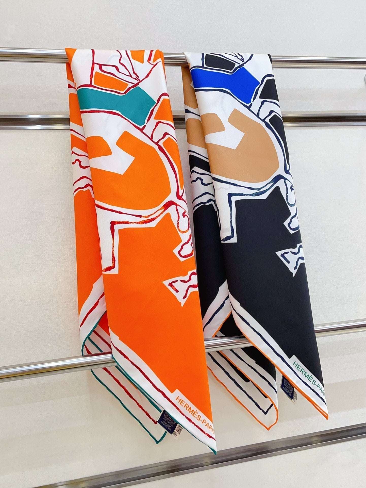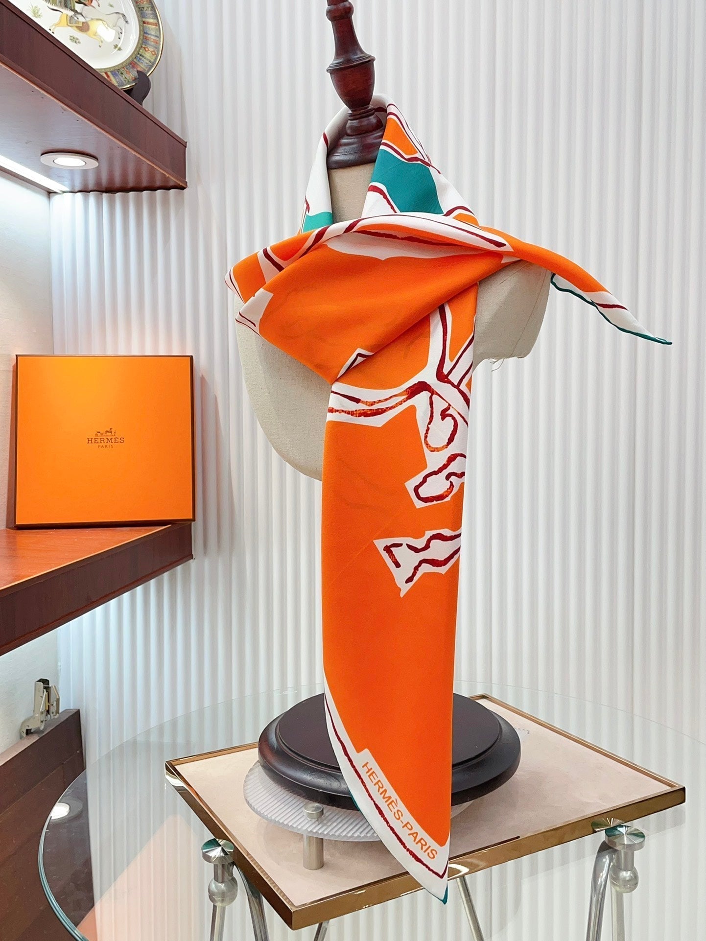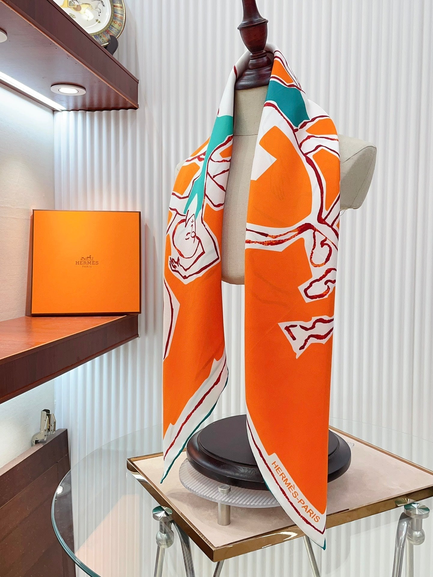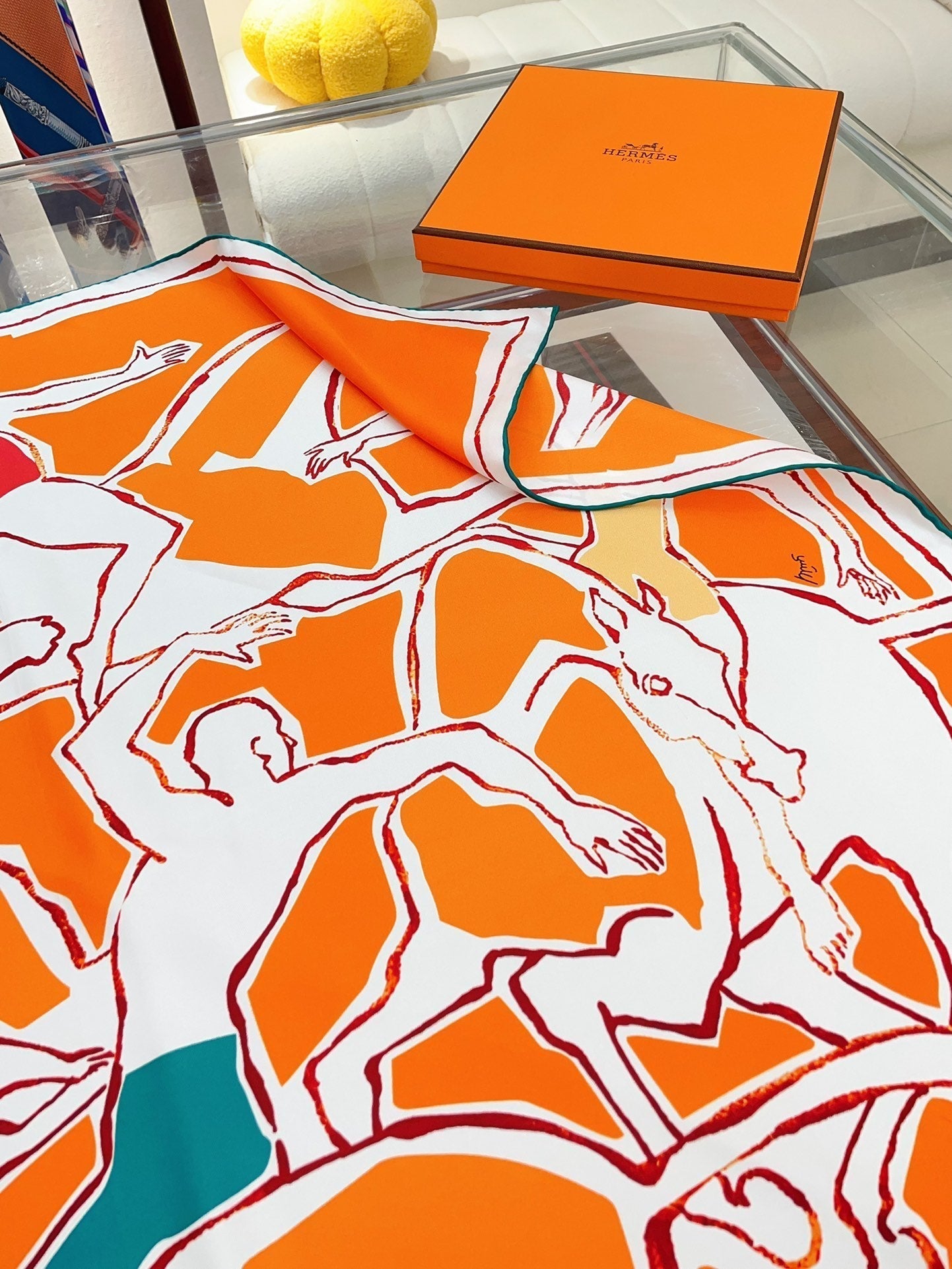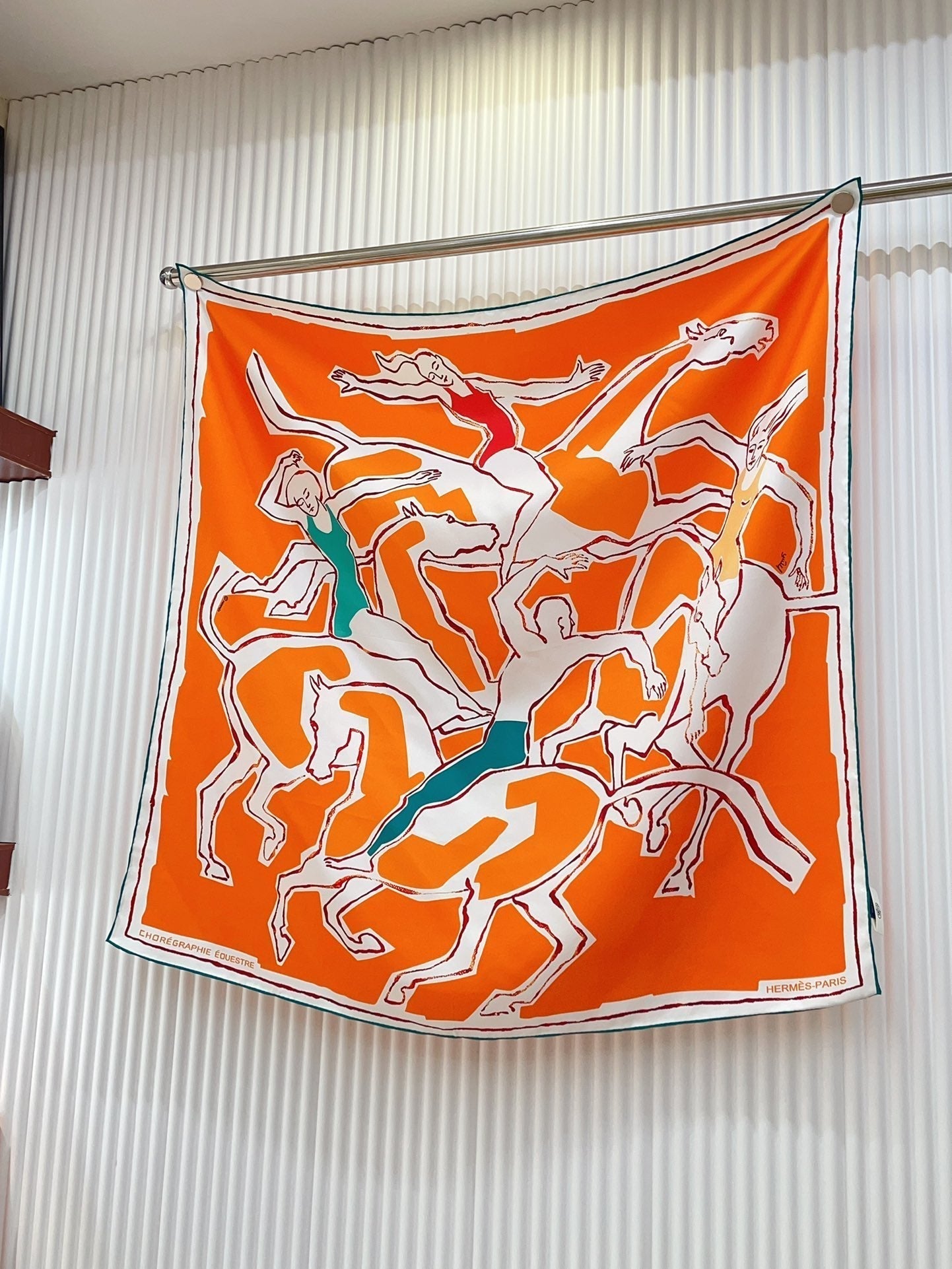 Choregraphie Equestre Scarf 90 CM In Orange Colorful Silk Twill 228977