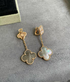 CLOVER 2 MOTIF DIAMOND DARK MOP EARRINGS