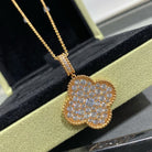 CLOVER LARGE PEDANT DIAMOND PAVED LONG NECKLACE