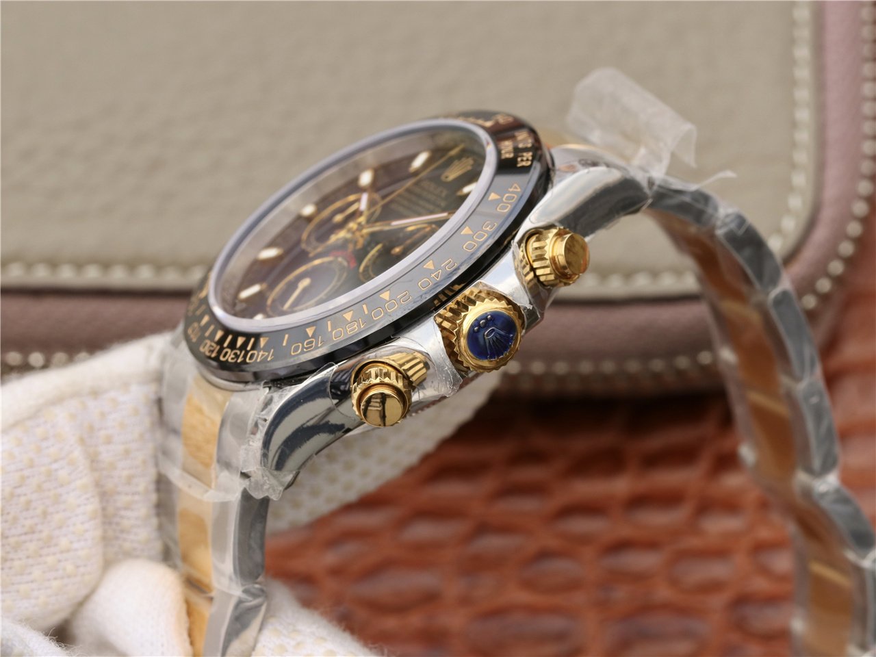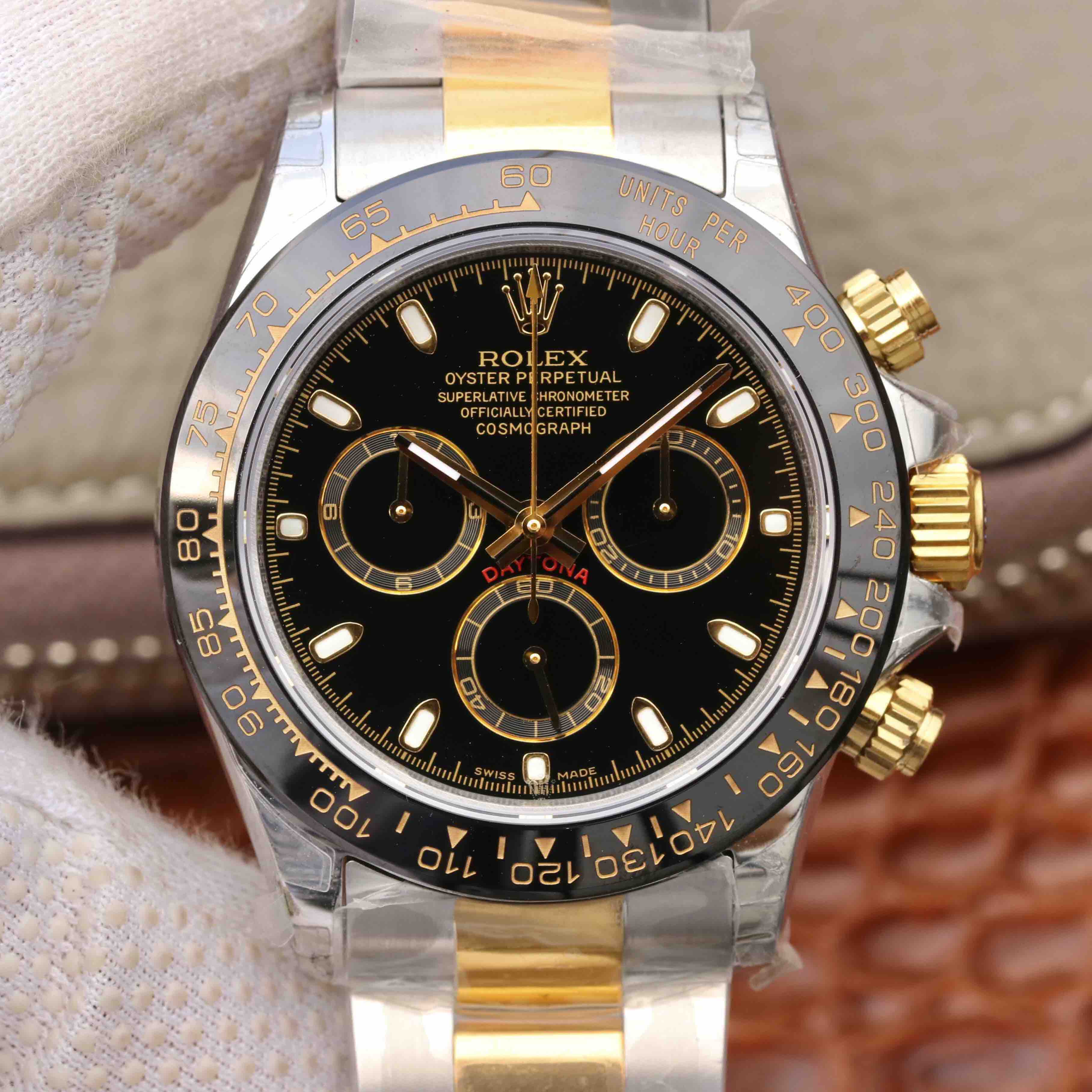DAYTONA 40MM GOLD STEEL BLACK BEZEL BLACK DIAL