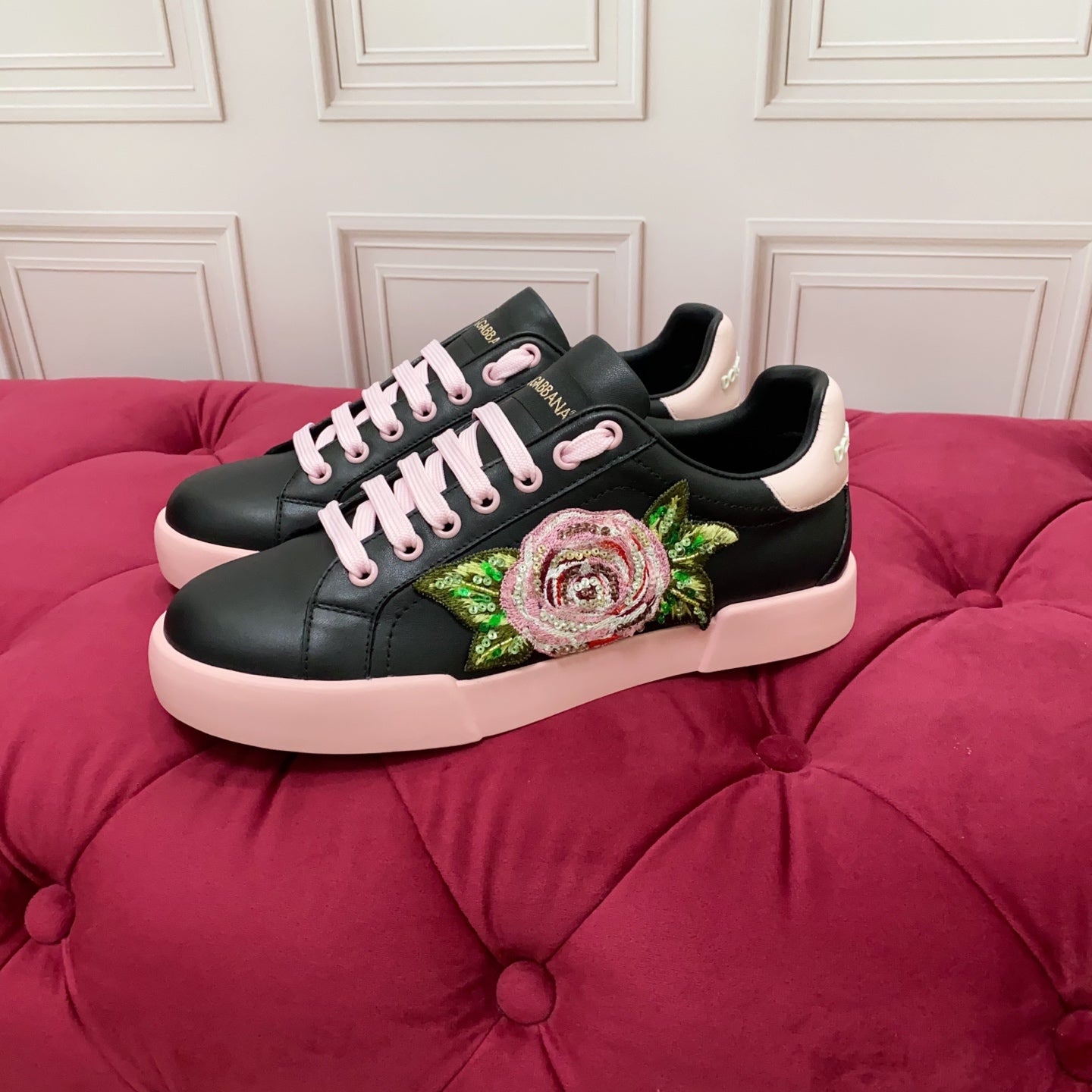 DC 25 Portofino Light Sneakers Black Pink Glitter Floral Pattern & Sheepskin 333870