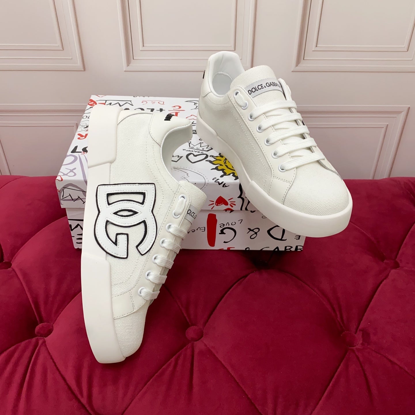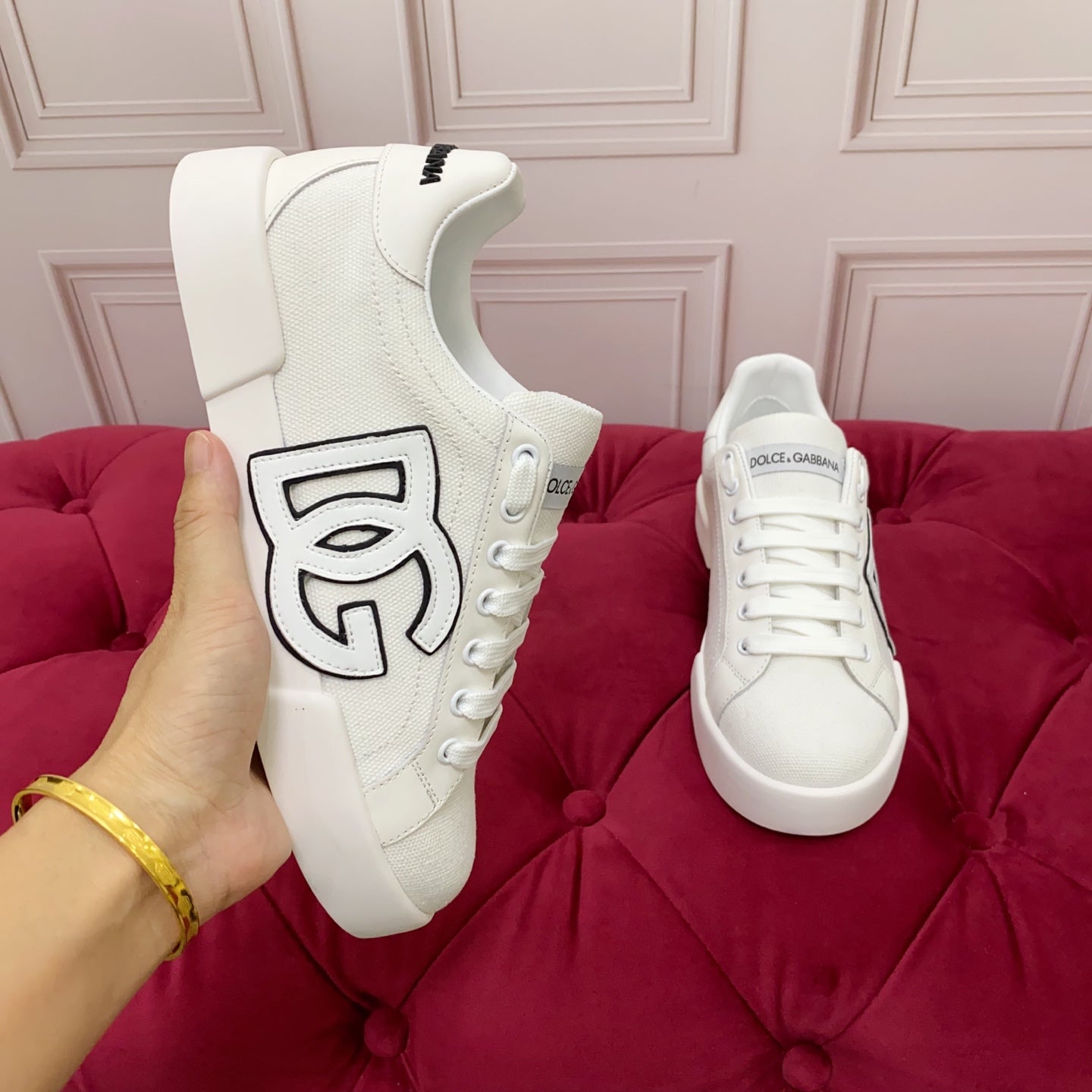 DC 25 Portofino Sneakers White Silk Cowhide & Canvas 333878