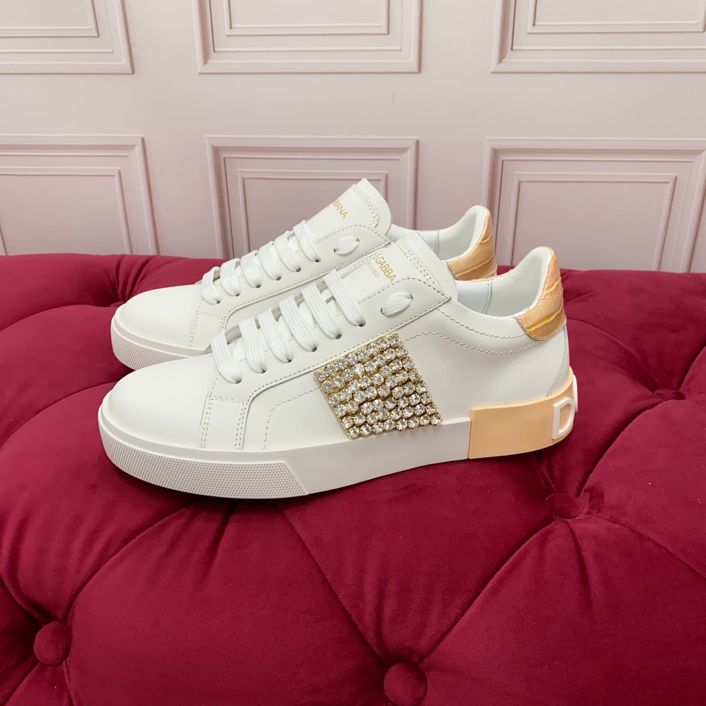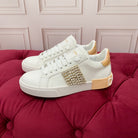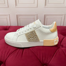 DC 25 Portofino Vintage Sneakers Yellow White Cowhide & Rhinestone Silk 333875