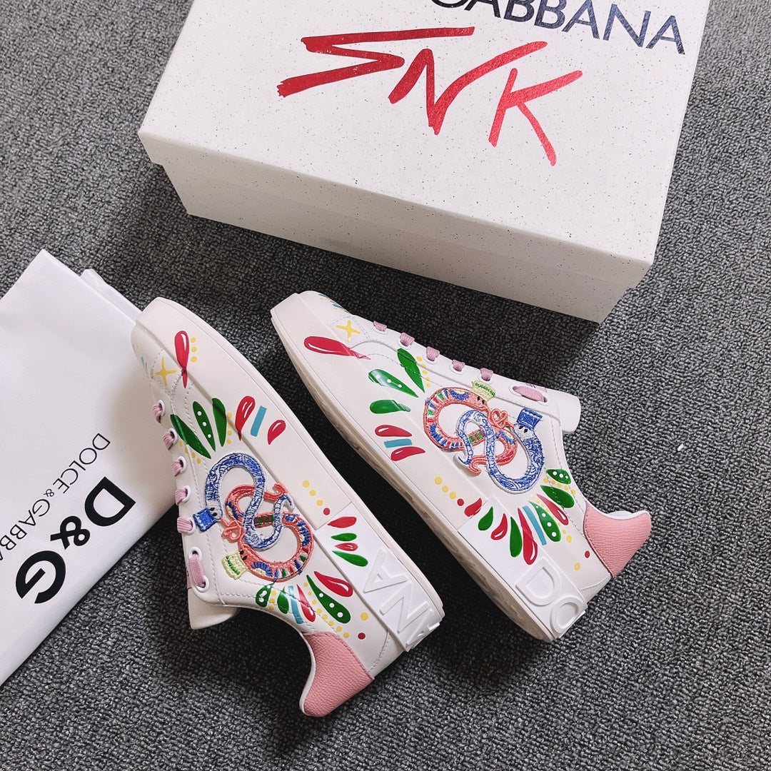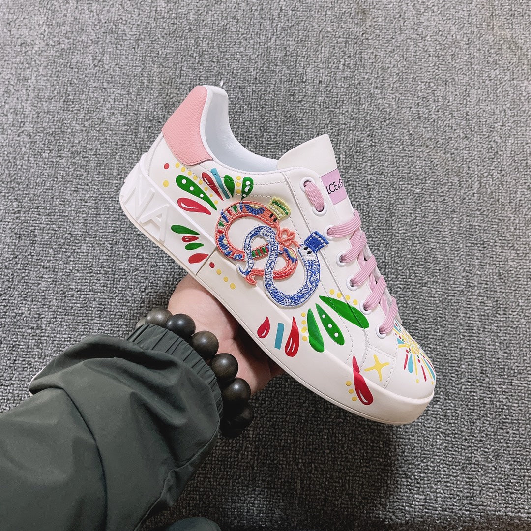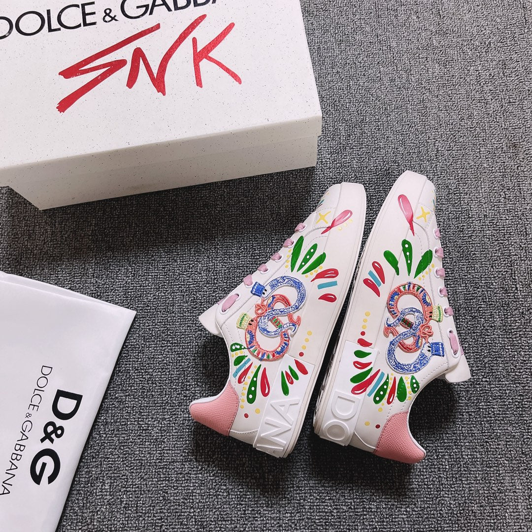 DC Portofino Limited Edition Sneakers Pink Snake Embroidery & Sheepskin 288470