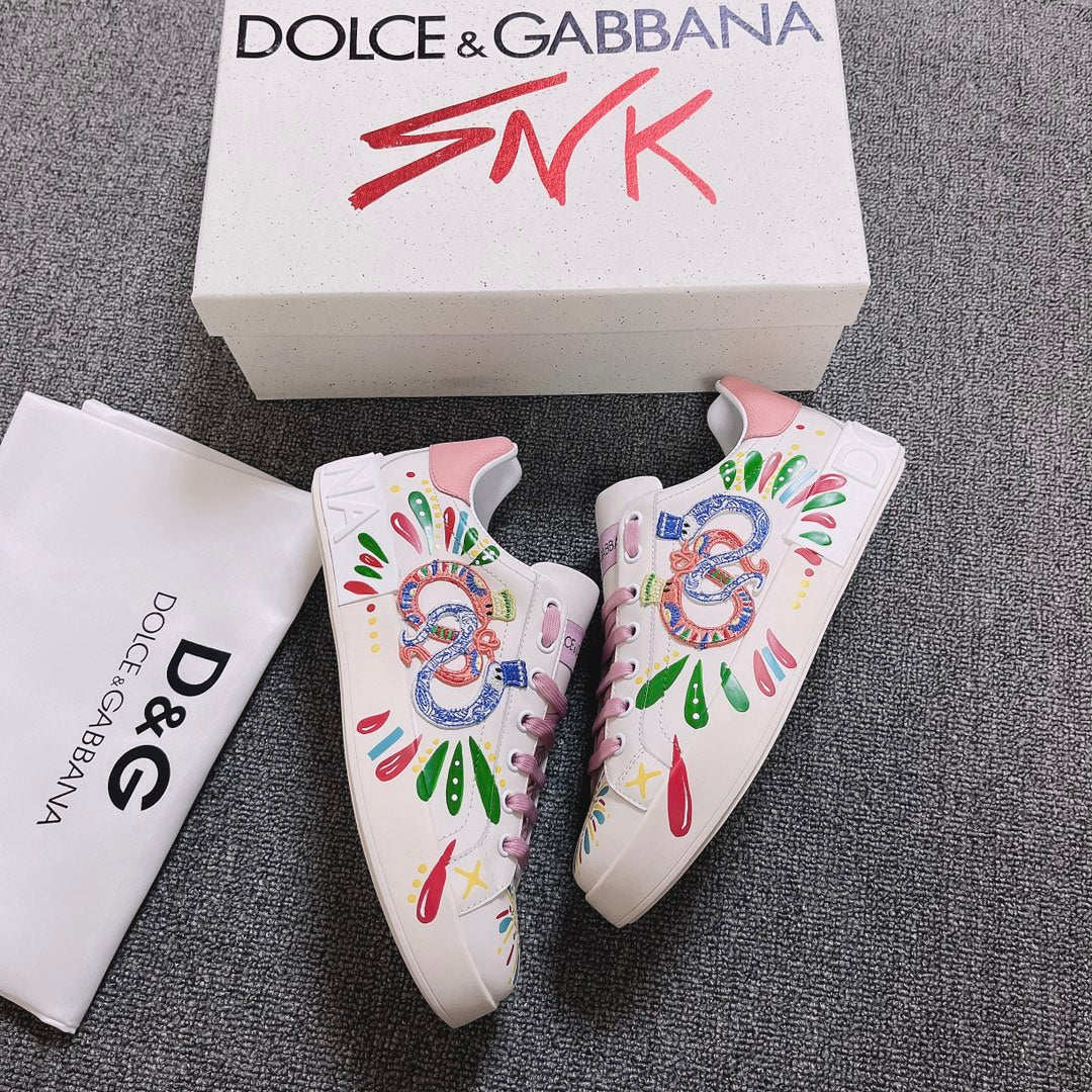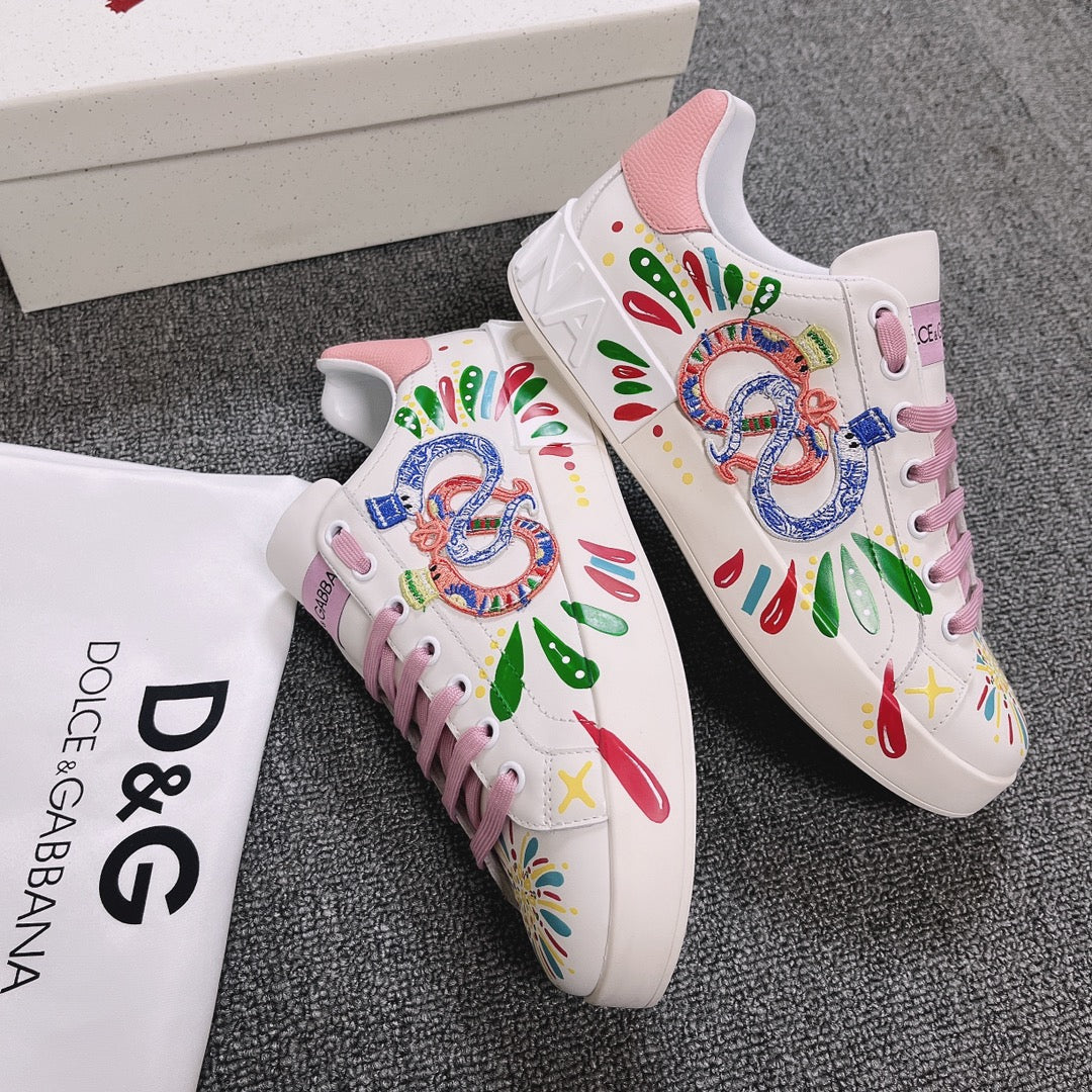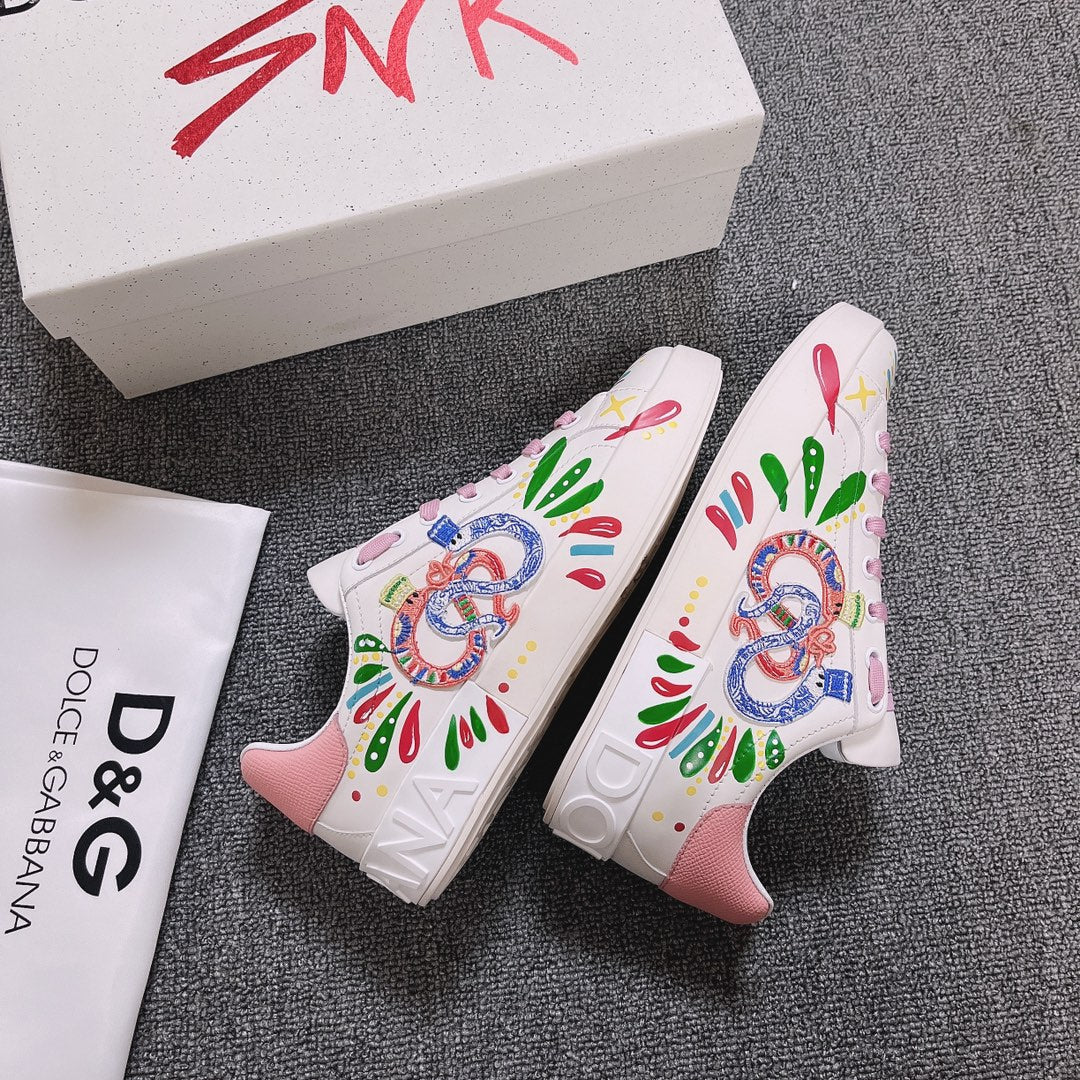 DC Portofino Limited Edition Sneakers Pink Snake Embroidery & Sheepskin 288470