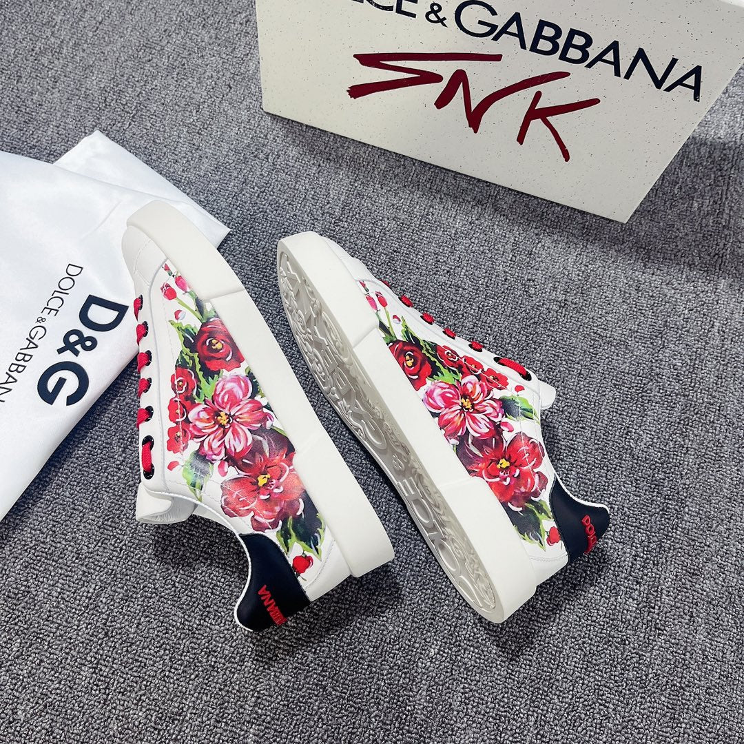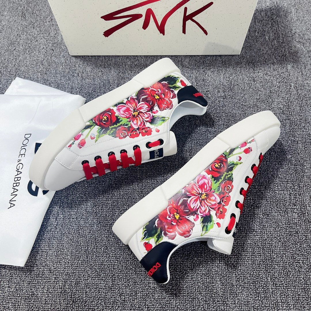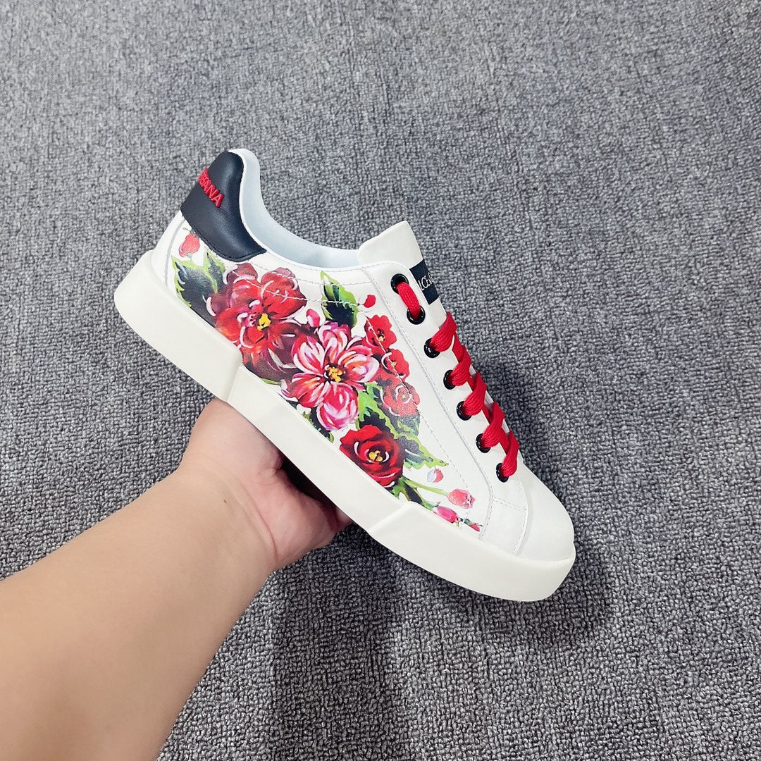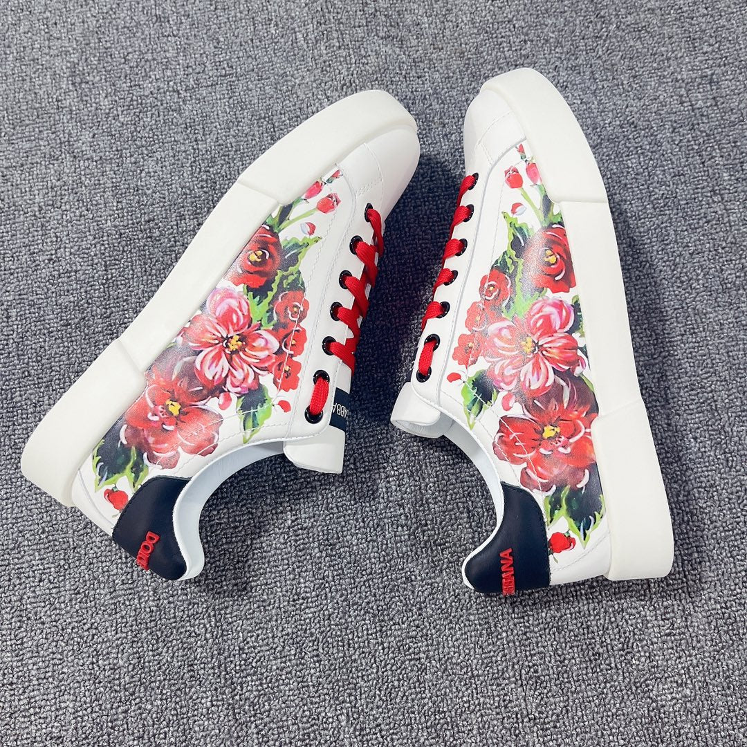 DC Portofino Sneakers White Red Floral-Print & Sheepskin 288469