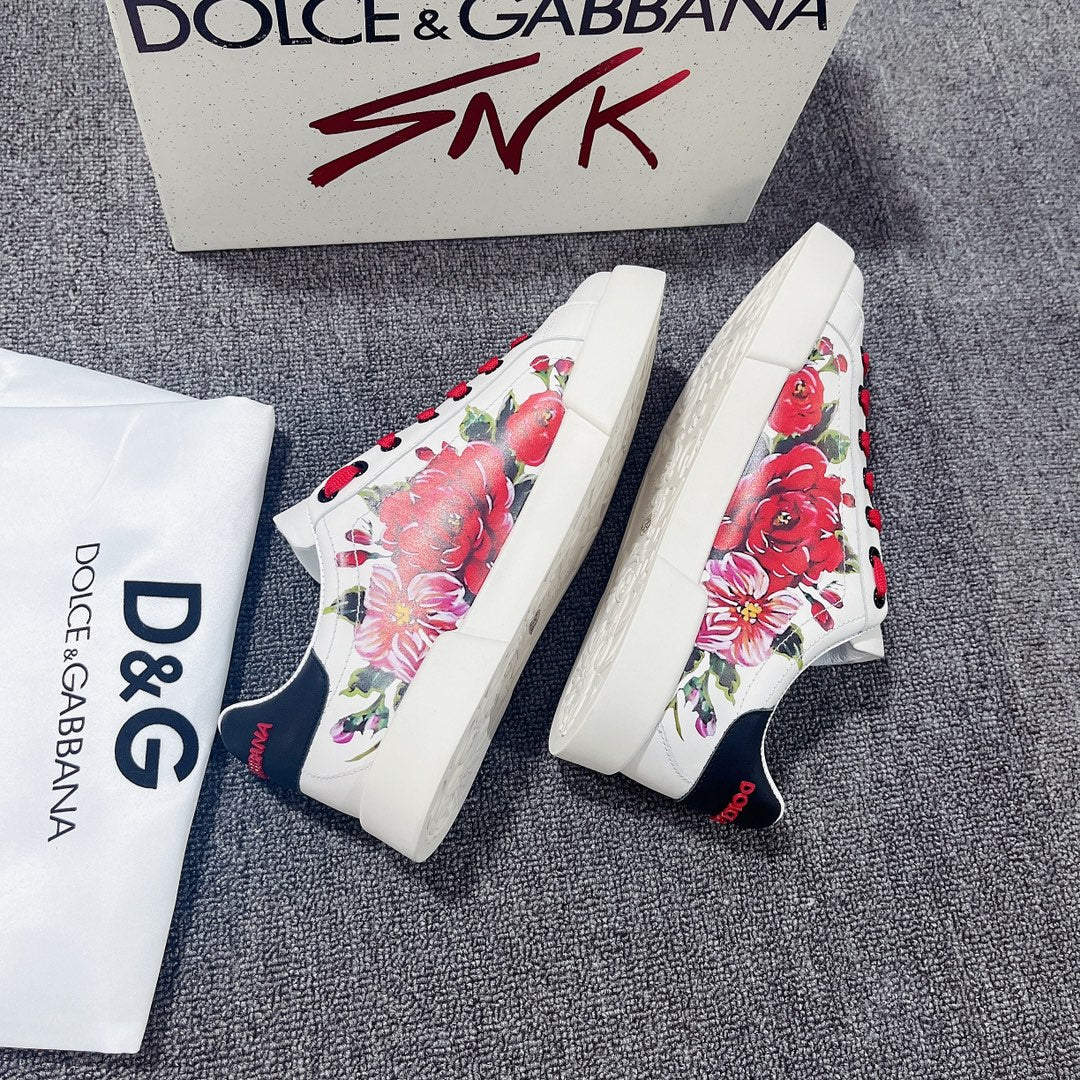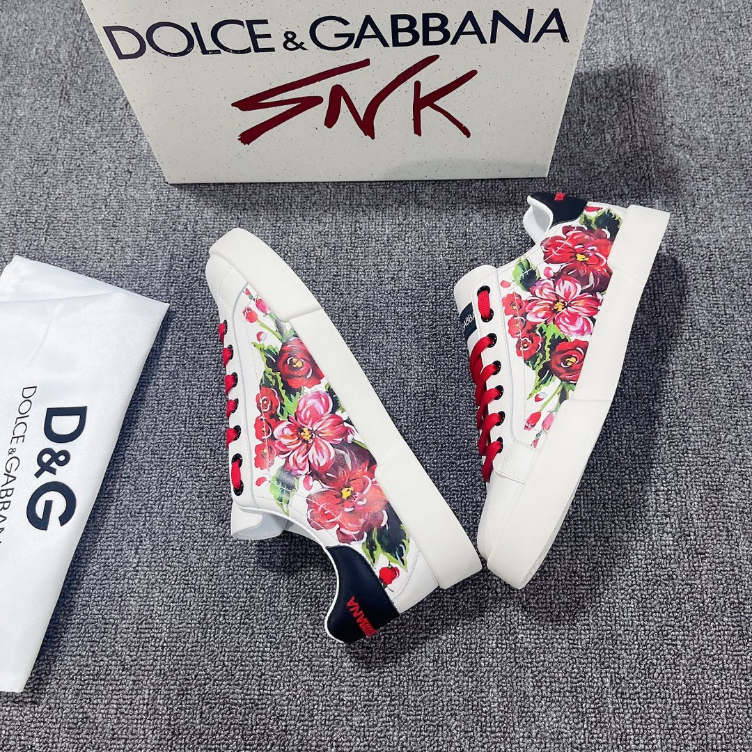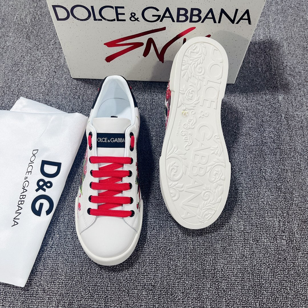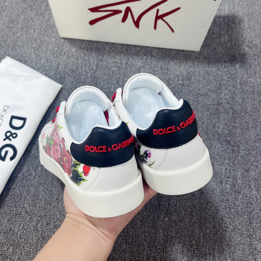 DC Portofino Sneakers White Red Floral-Print & Sheepskin 288469