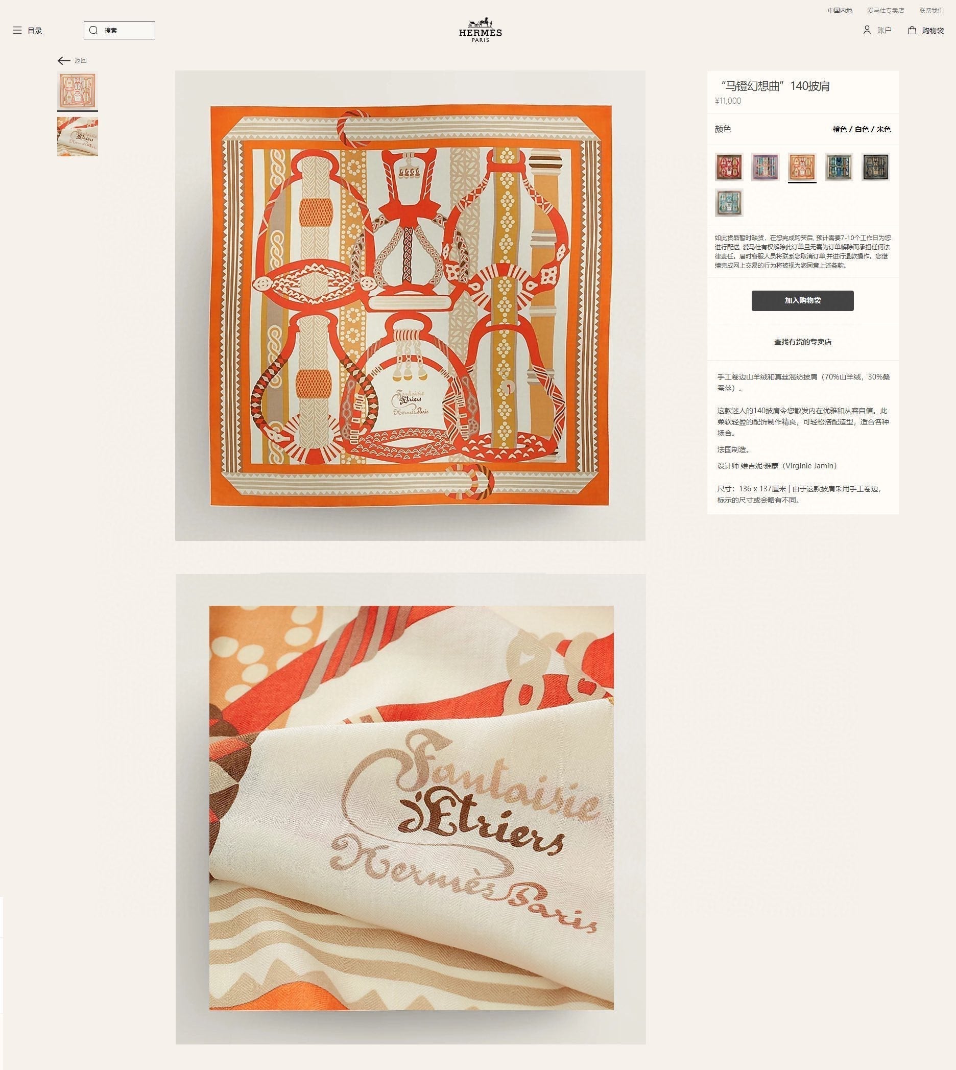 Fantaisie d'Etriers Shawl 135 CM Orange Colorful Cashmere And Silk 402081