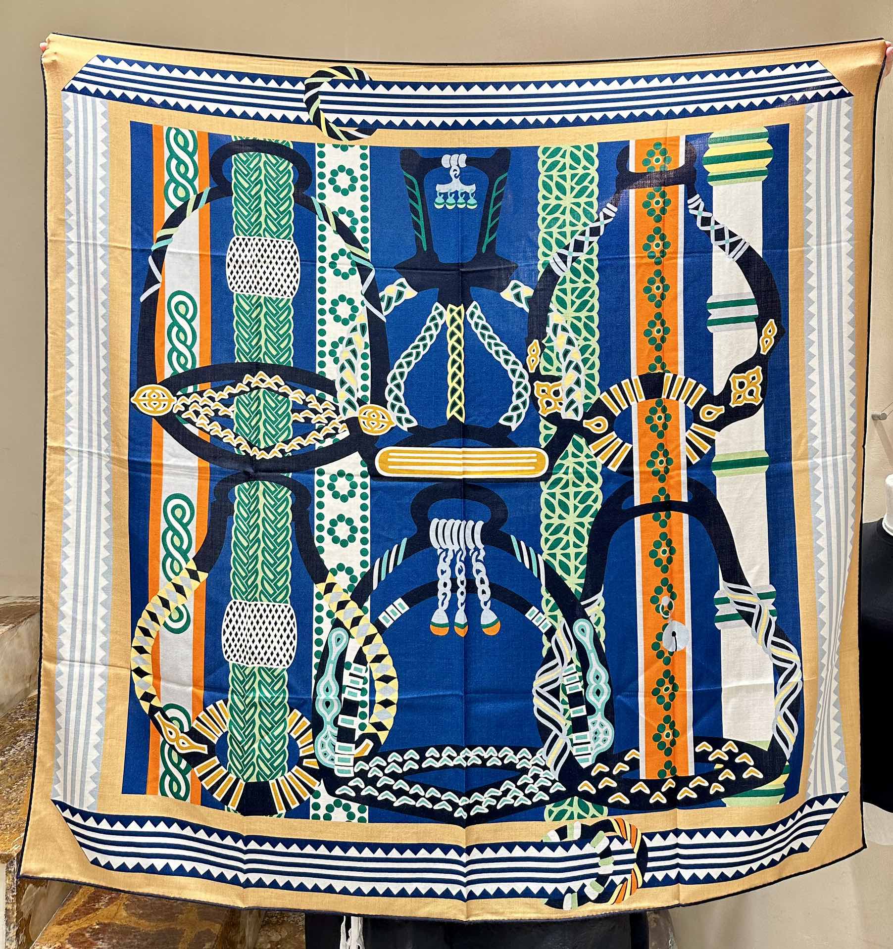 Fantaisie d'Etriers Shawl 140 CM Green Mix Blue Colorful Silk