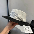 FLAT STRAW HAT BLACK AND WHITE 673935