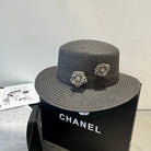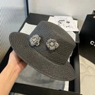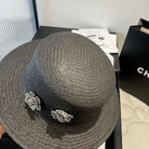 FLAT STRAW HAT BLACK FLOWER ATTACHMENT 673929