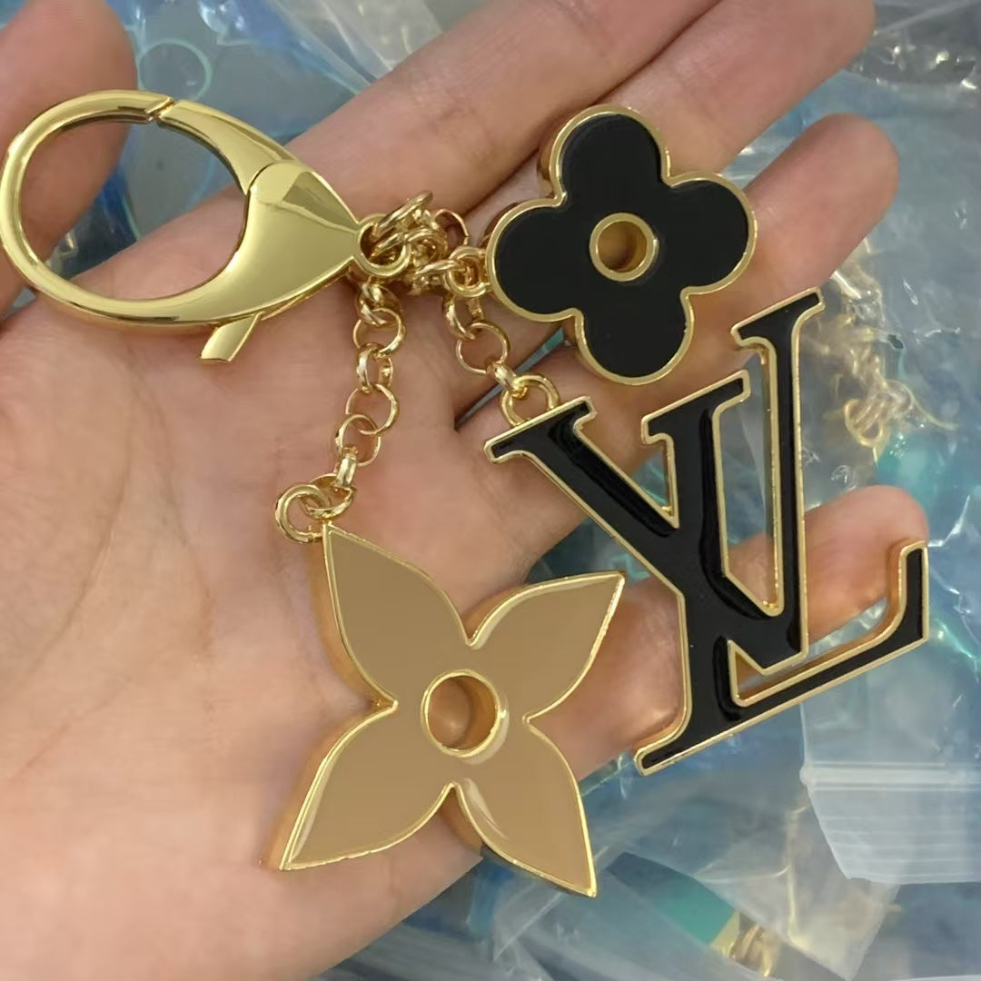 Fleur de Monogram Key Holder Bag Charm Gold Mix Black