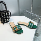 GG BAMBOO BUCKLE FLAT SANDALS GREEN