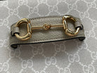 GG HORSEBIT 1955 SADDLE BAG 25 IN WHITE CANVAS AND BEIGE CALFSKIN
