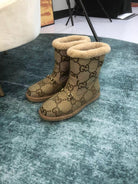 GG Horsebit Snow Boots Dark Beige Woolen Fabric Fleece 576252