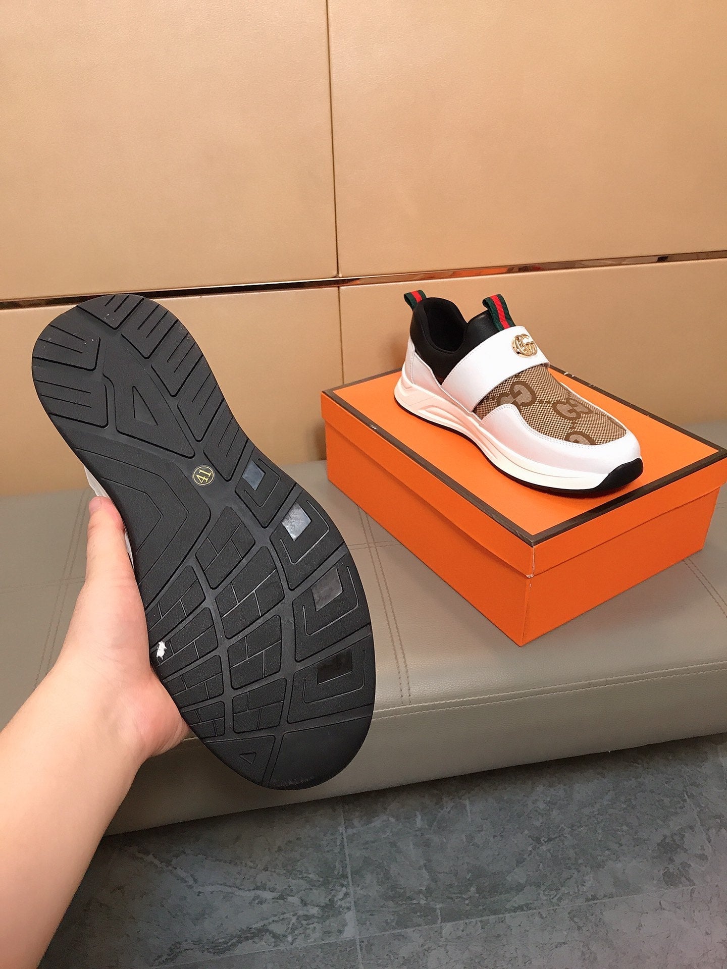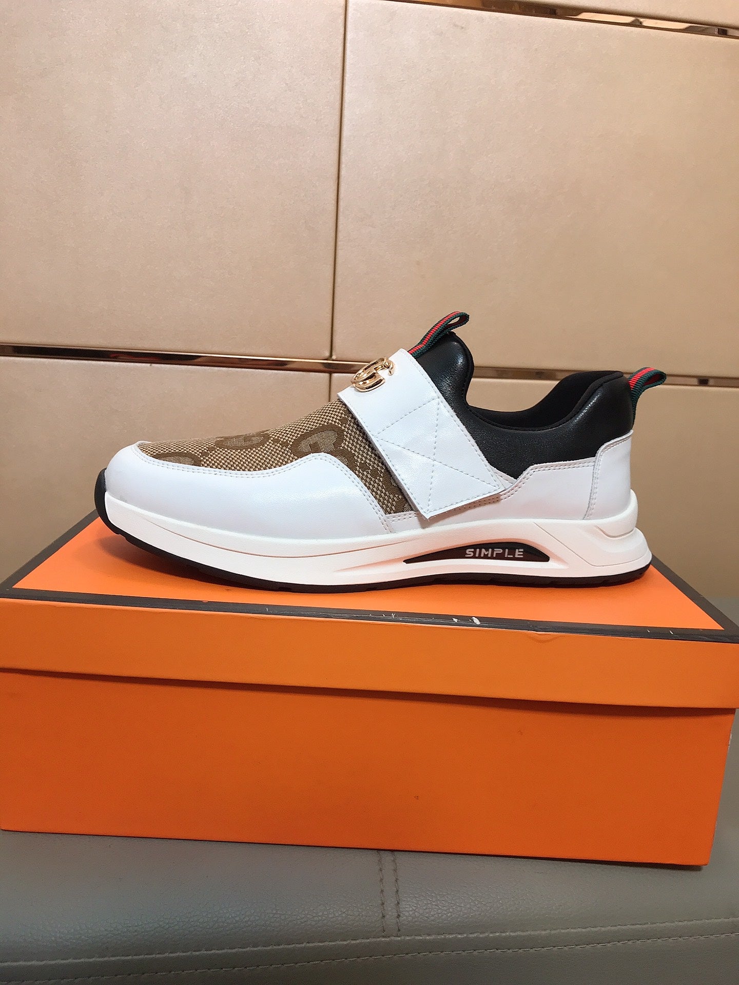GG Men's Slip on White Brown Cowhide Canvas 530404