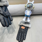 GLOVES IN BLACK DEERSKIN WITH RABBIT FUR LINING 427385
