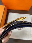 H CONTANCE BELT 38MM GOLD BUCKLE BLUE BLACK LEATHER