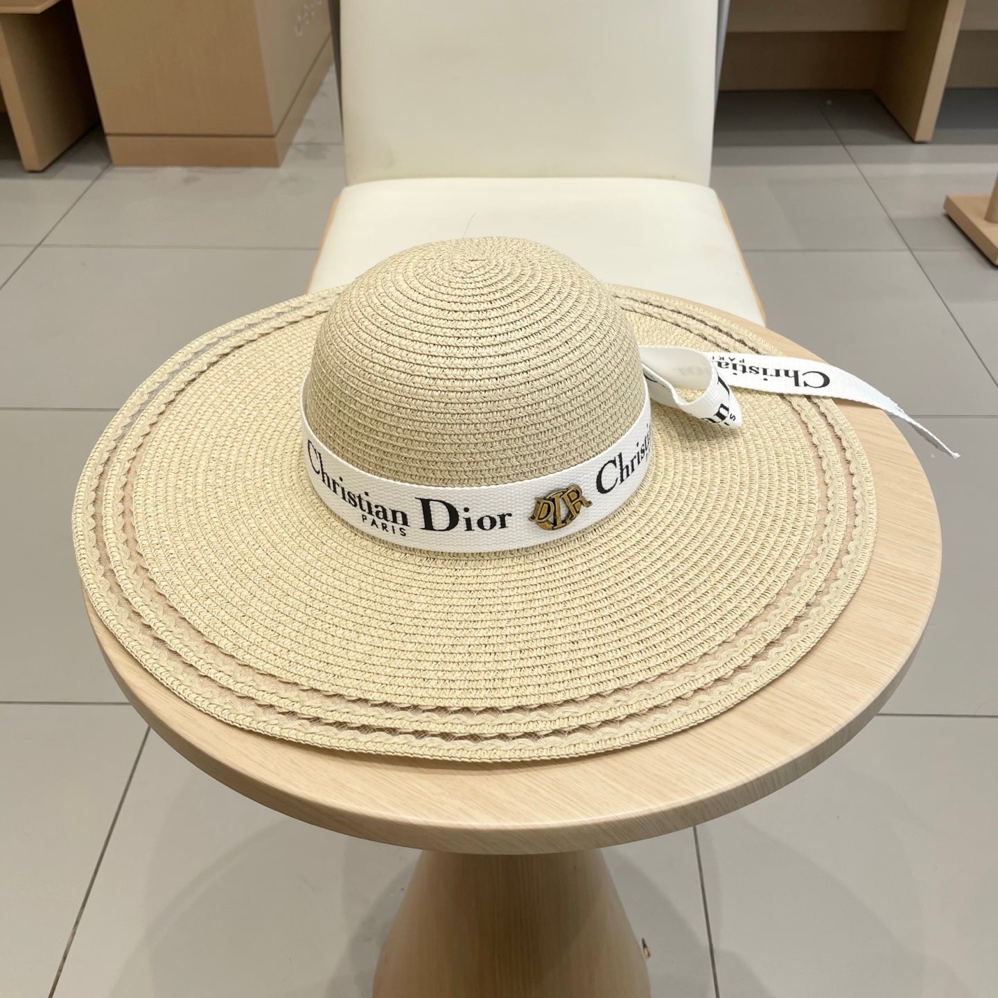 HAT IN BEIGE RAFFIA WIDE-BRIM MIX BIG WHITE BOW
