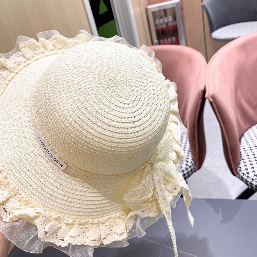 HAT IN CREAM WHITE RAFFIA MIX LACE FABRIC