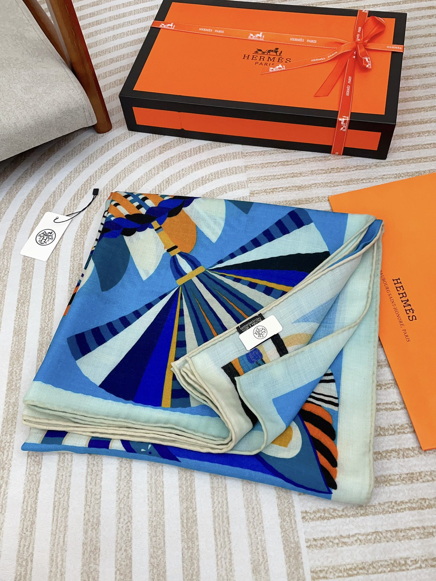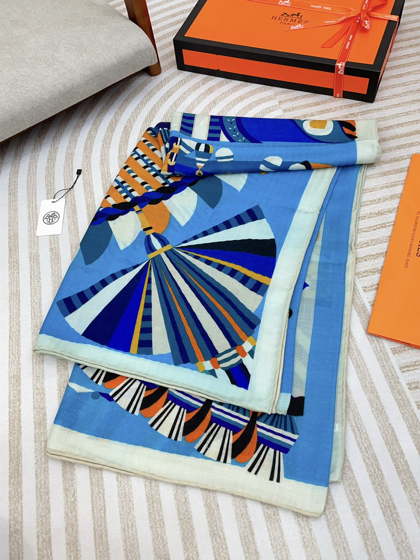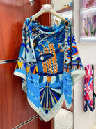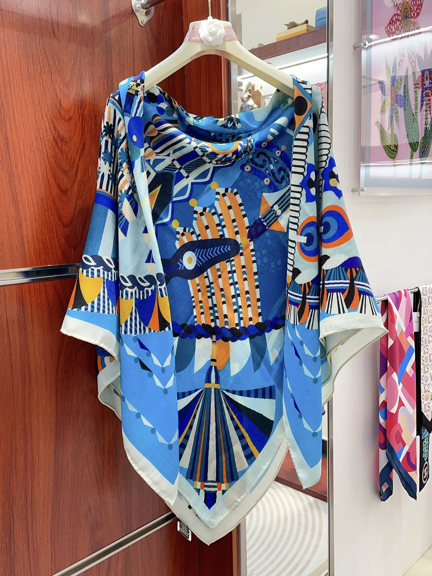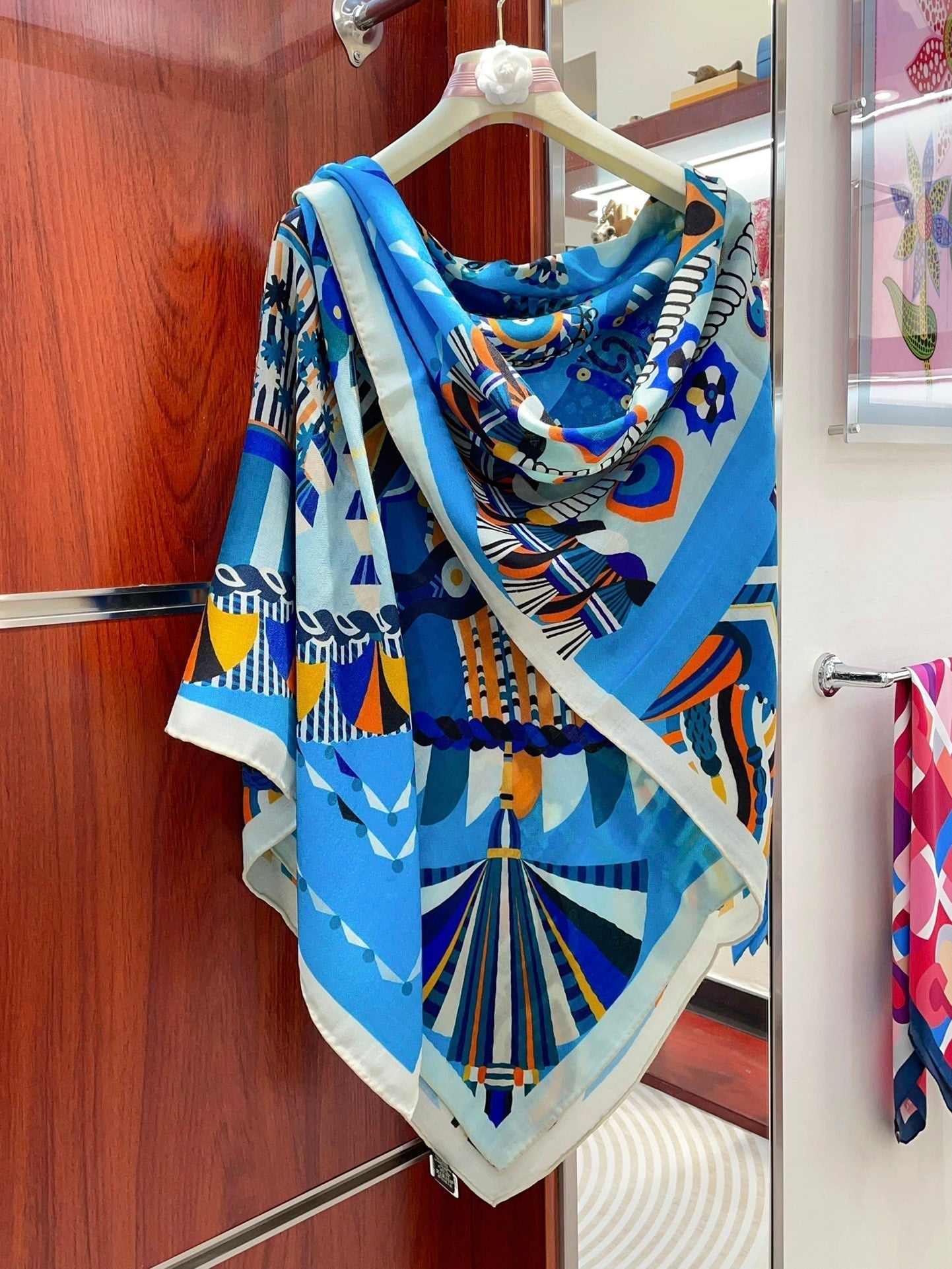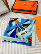 Haute Parure Scarf 135 CM Blue Colorful Cashmere And Silk 405069
