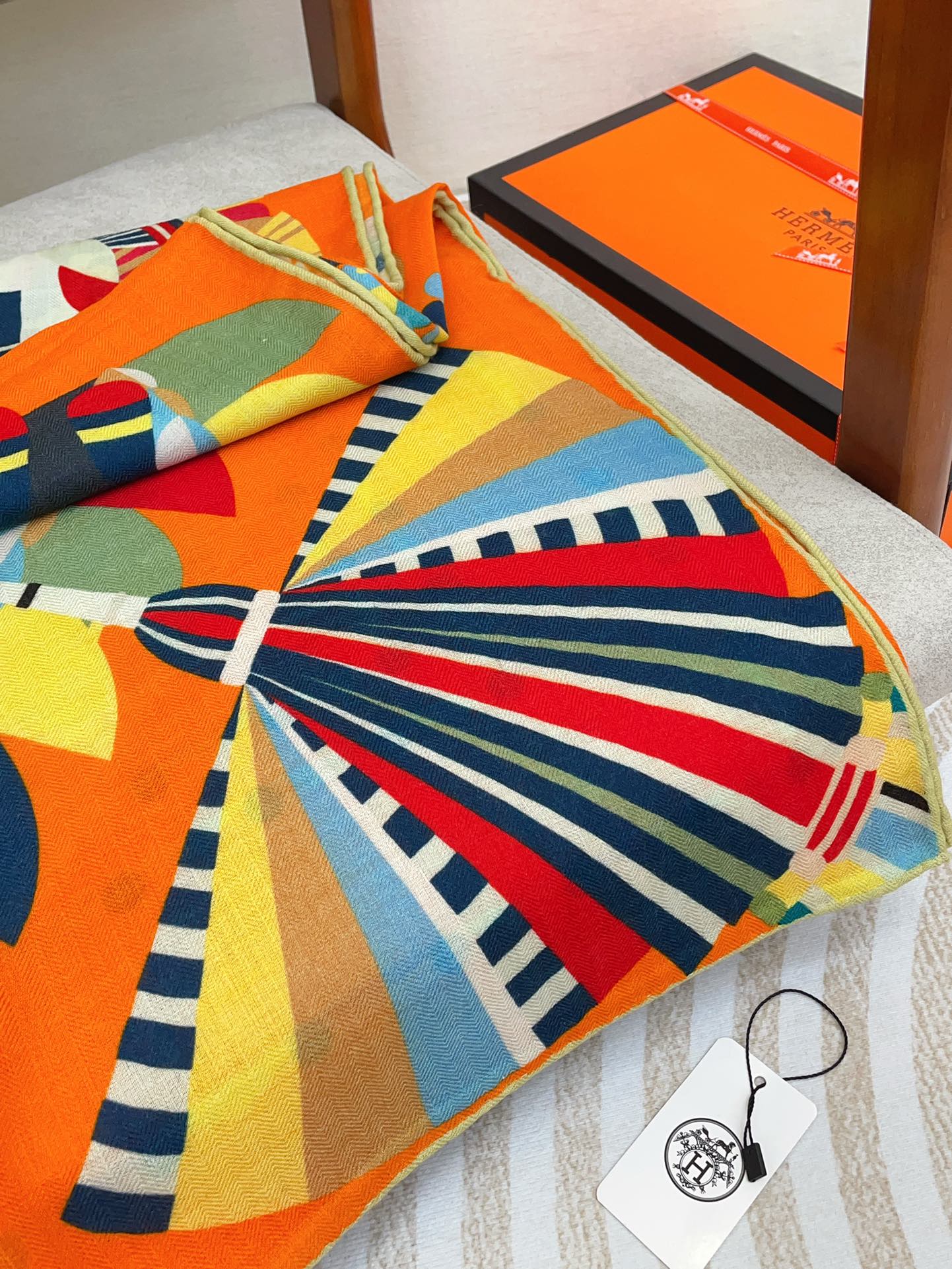 Haute Parure Scarf 135 CM Orange Colorful Cashmere And Silk 405068