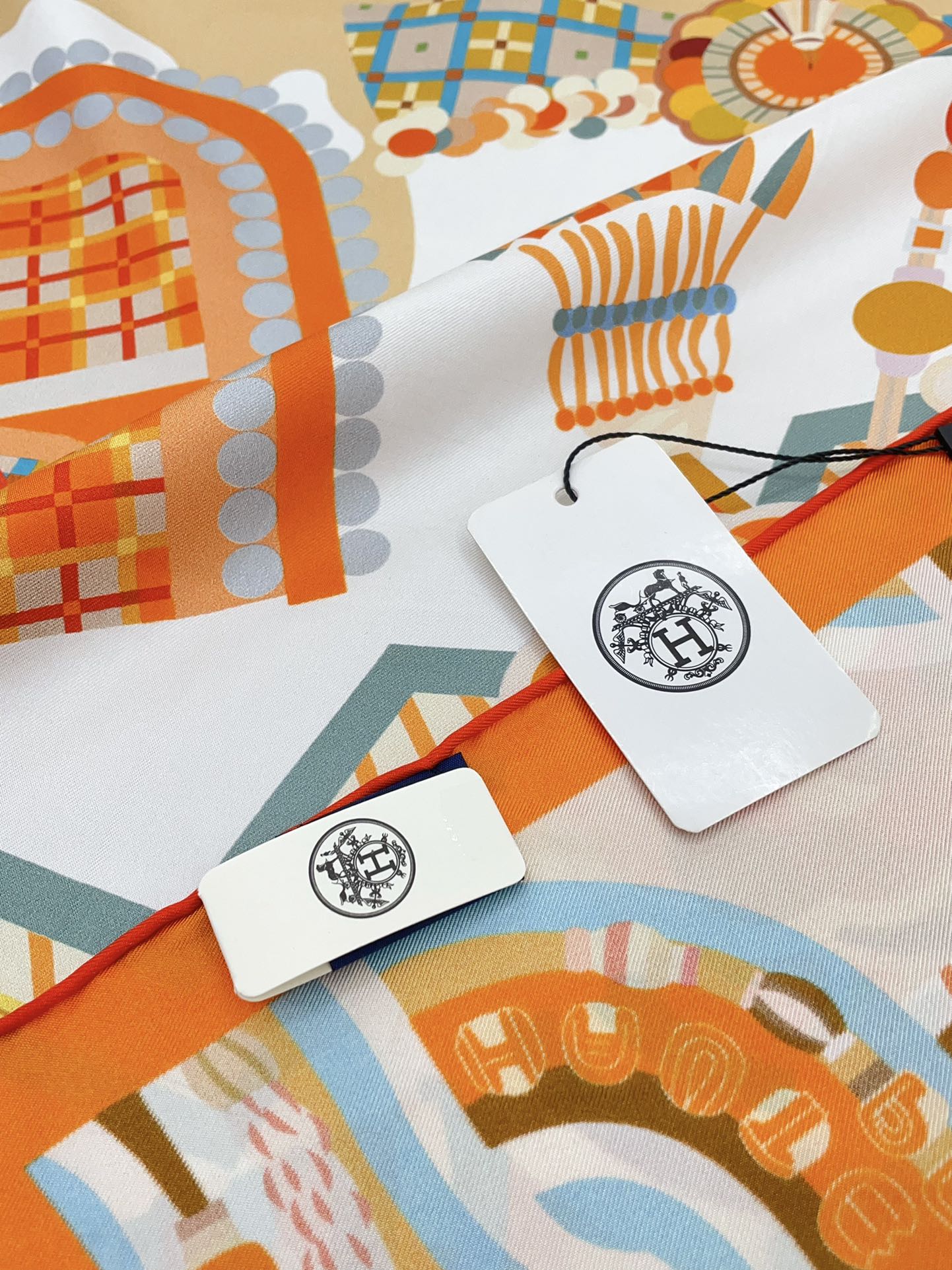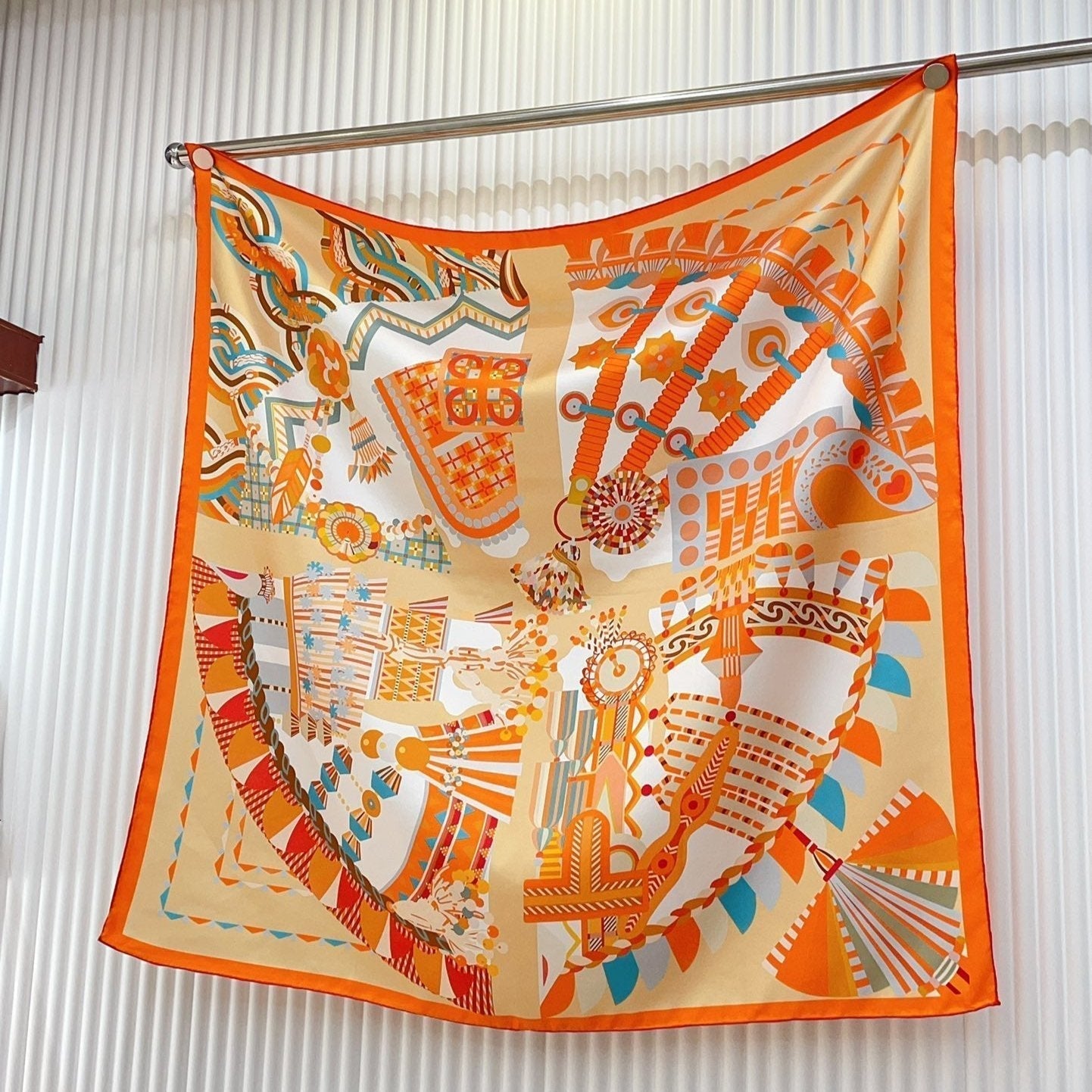 Haute Parure Scarf 90 CM In Orange Colorful Silk Twill 239534