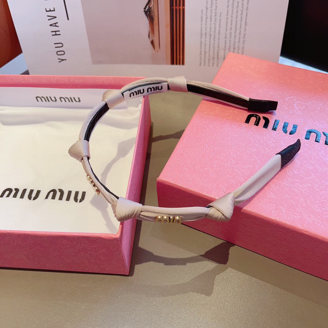 HEADBAND GOLD LOGO IN BEIGE SILK 417302
