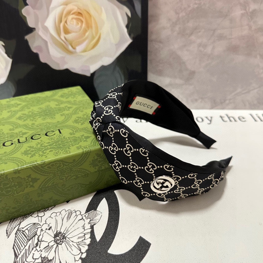 HEADBAND IN BLACK MIX BEIGE MONOGRAM SILK 423618